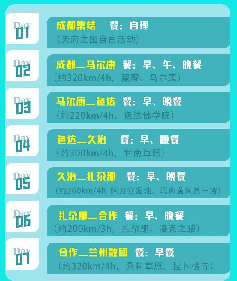 全年發團,週六成都集合,週日出發,次週五抵達蘭州結束行程,節假日略有調整。