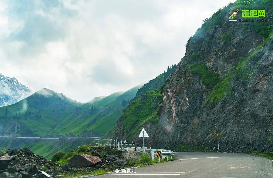 伊昭公路是古代絲綢之路“弓月道”的其中一段。它溝通了天山南北,跨過了三千米的皚皚雪峯,兩側是懸崖深澗。