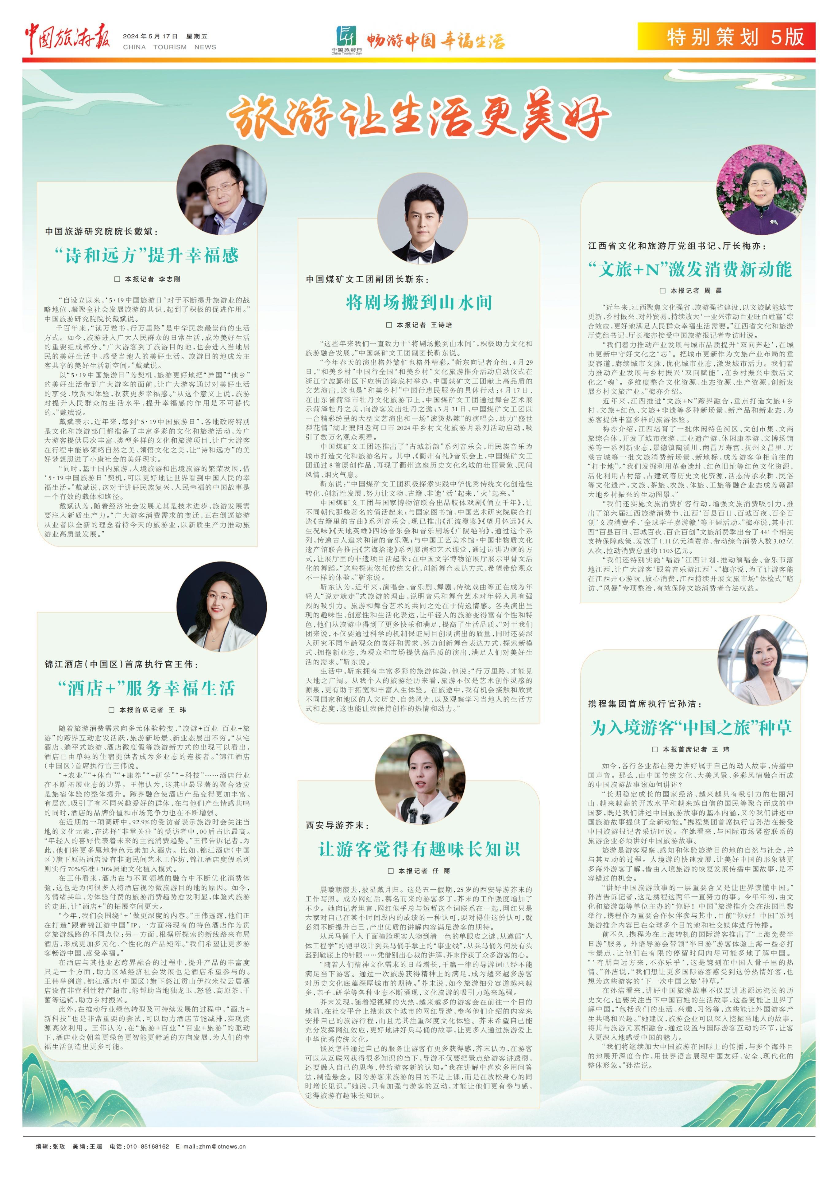 “同時,基於國內旅遊、入境旅遊和出境旅遊的繁榮發展,借‘5·19中國旅遊日’契機,可以更好地讓世界看到中國人民的幸福生活。”戴斌說,這對於講好民族復興、人民幸福的中國故事是一個有效的載體和路徑。