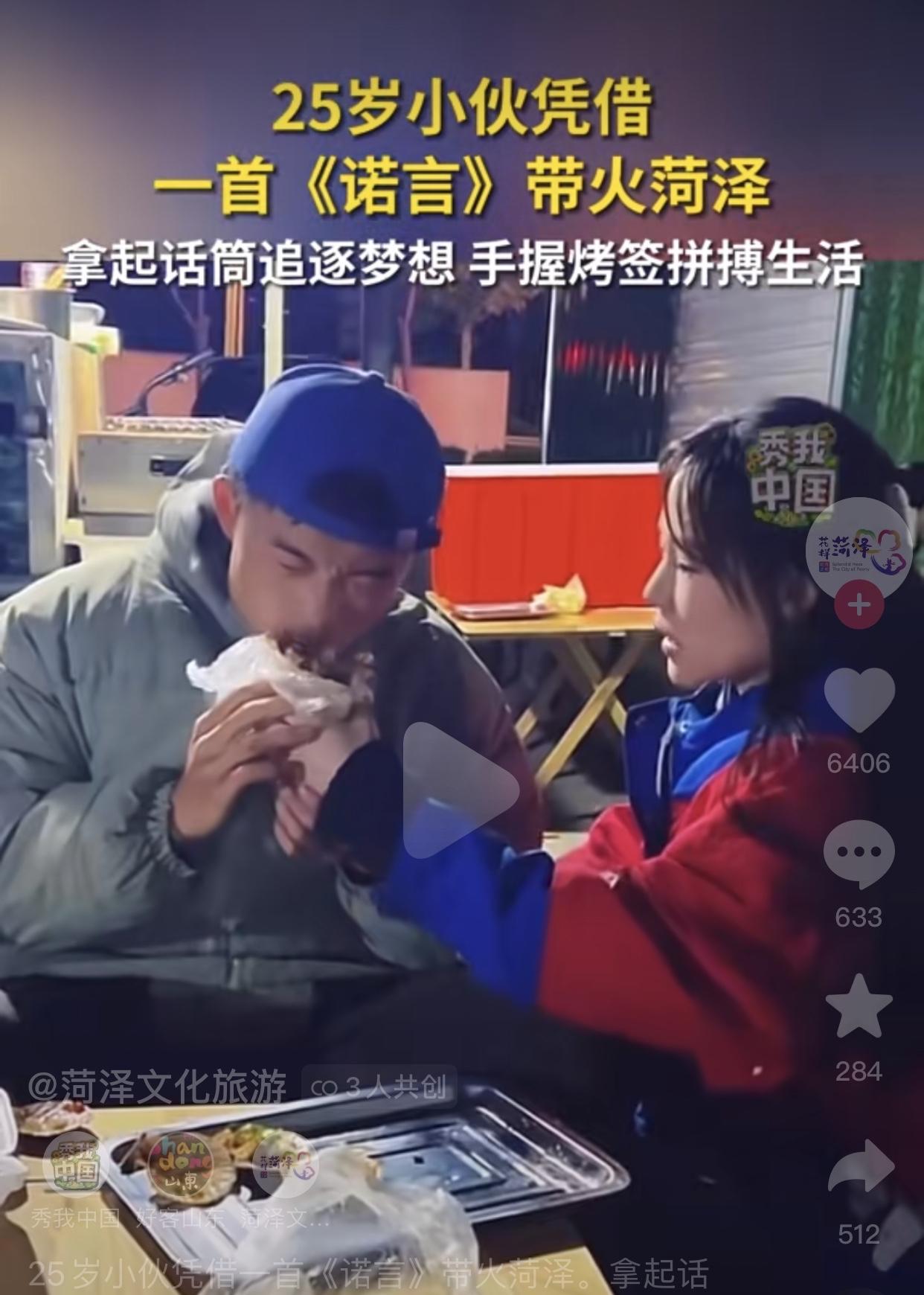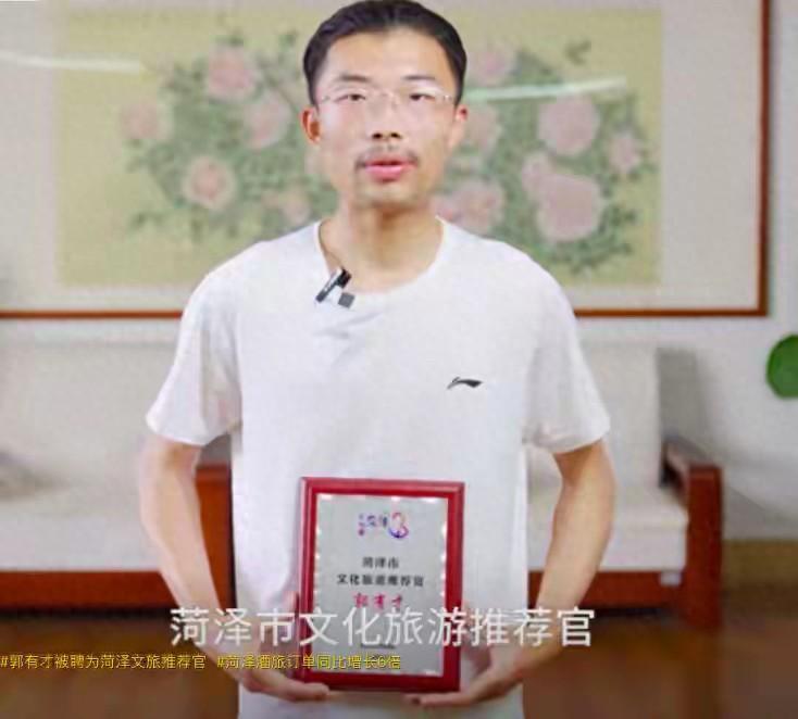 郭有才熱度太高了,隨着5月19日中國旅遊日臨近,歌有才被菏澤文旅聘請爲菏澤旅遊形象推薦官,郭有才表示歡迎大家到菏澤來玩,欣賞牡丹,品嚐美食燒烤,聽他唱諾言。