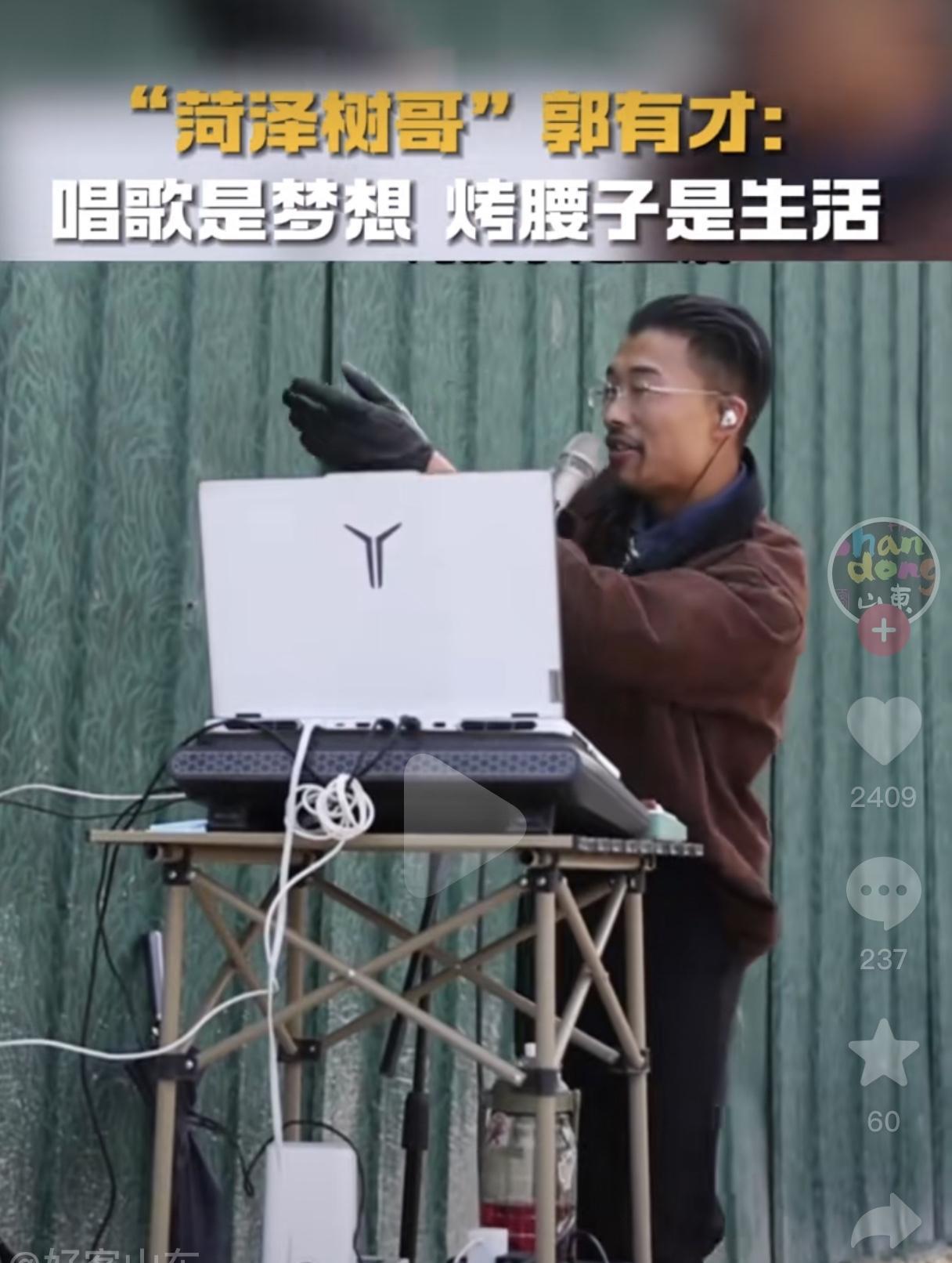 燒烤的這五年,互聯網自媒體興起,人人都有出圈的機會,郭有才白天到菏澤南站直播唱歌,晚上到夜市擺攤賣燒烤,他說白天唱的是夢想,夜晚烤的是生活。