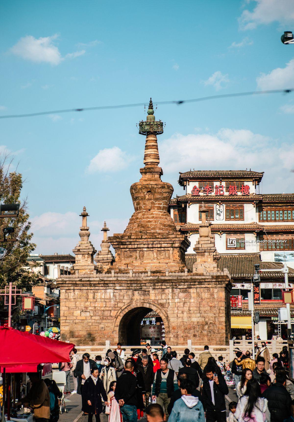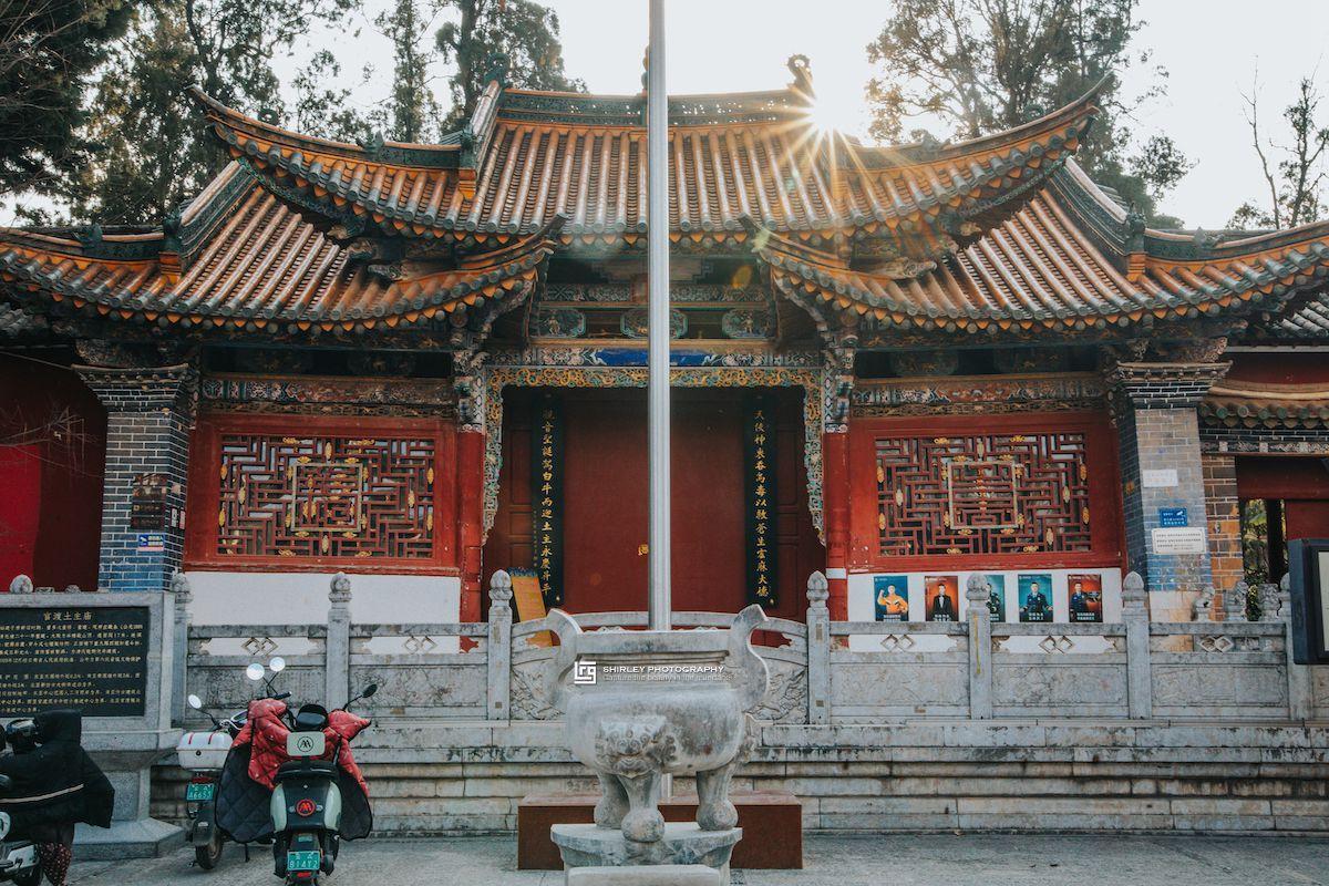 土主廟,建於南詔時期(中原爲唐朝),至今已有1200多年。我們到達的時候正逢工作人員下班,只在門口望了一眼沒能進去參觀,看到裏面的大殿圍着腳手架還在修繕中。除上述景點之外,古鎮還有法定寺、觀音寺、得月樓、魁星閣、凌雲閣、望海樓、一顆印民居、牌坊等古建築值得打卡。