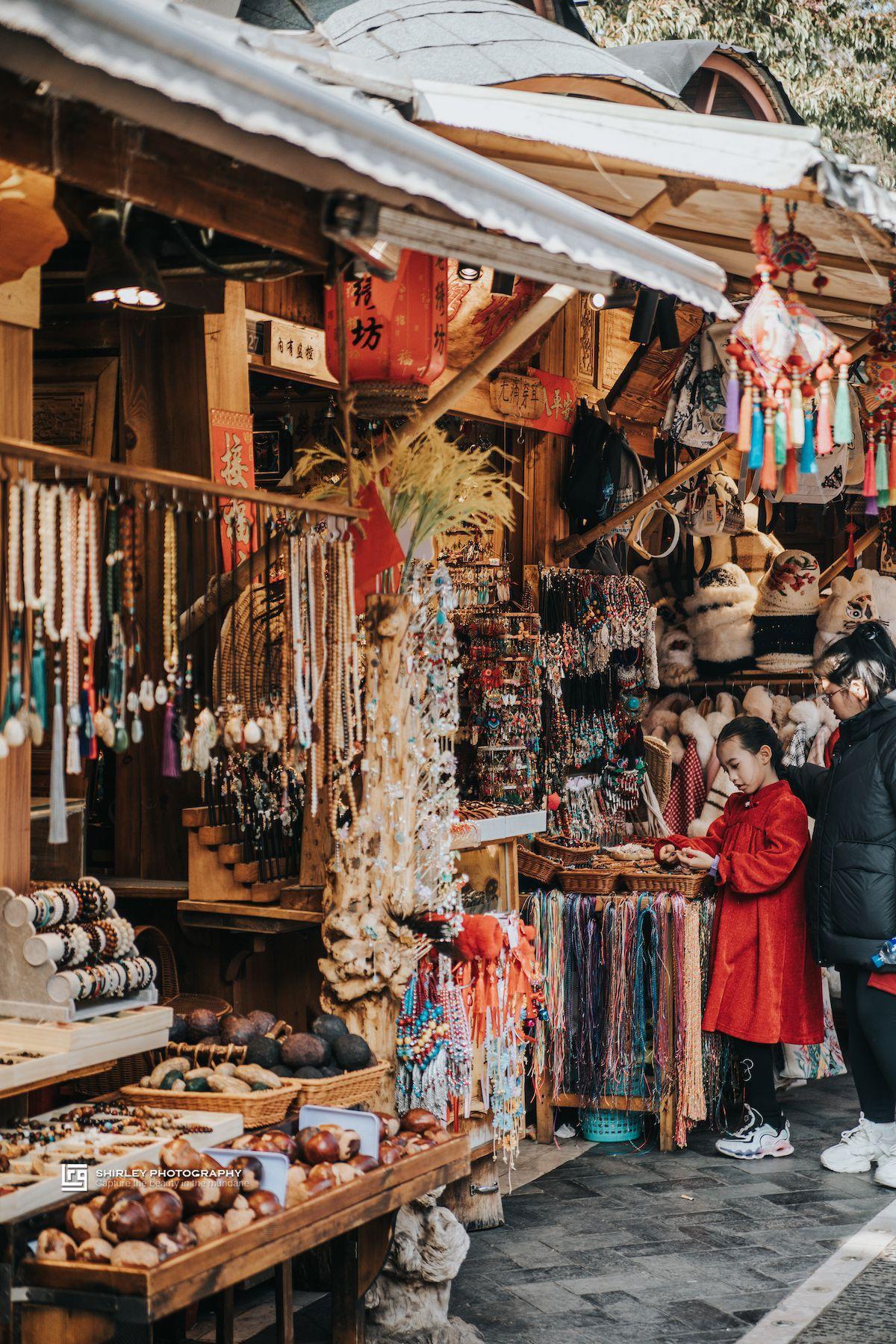 古鎮呈東西向長條形分佈,從廣福路的古鎮正大門開始,一條購物街(主幹道)直貫古鎮東西。大部分遊客都集中在主幹道上,一些小巷子人非常少。古鎮絕大部分房屋都是後來重建的,沿街開着的商鋪和國內其他古鎮老街風格雷同,商業氣息也比較濃。