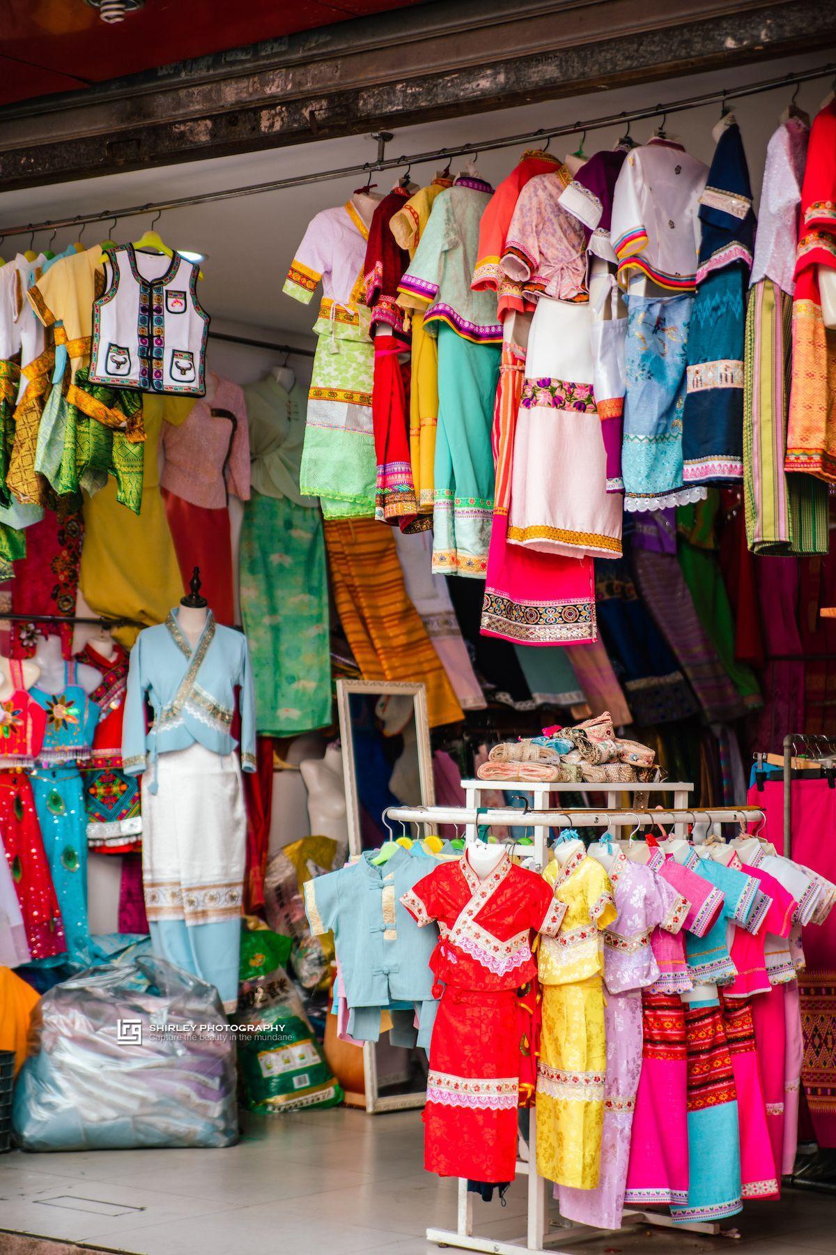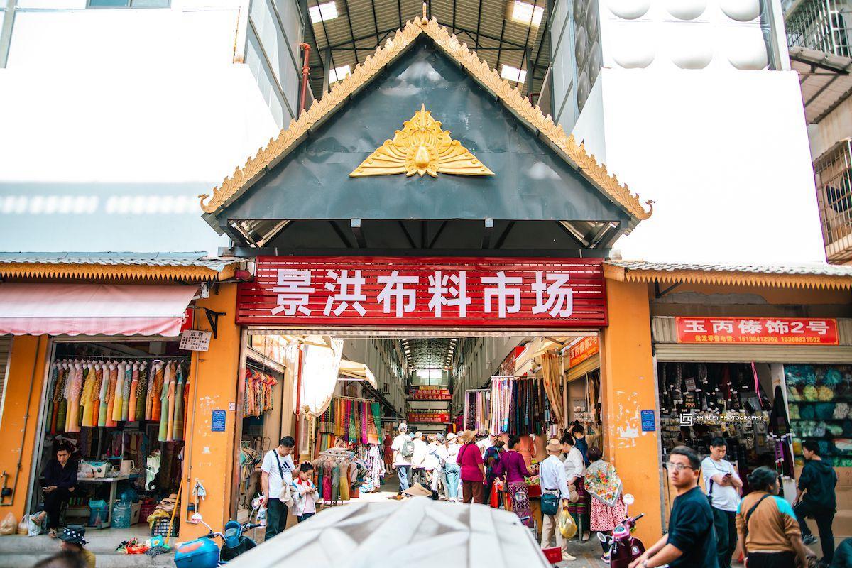 景洪農貿市場連着布料市場,這裏的傣服比起夜市裏2、30元/套的正宗許多,當然價格也不便宜。也可以買了布料請市場裏的裁縫定做,適合待的時間長的遊客。