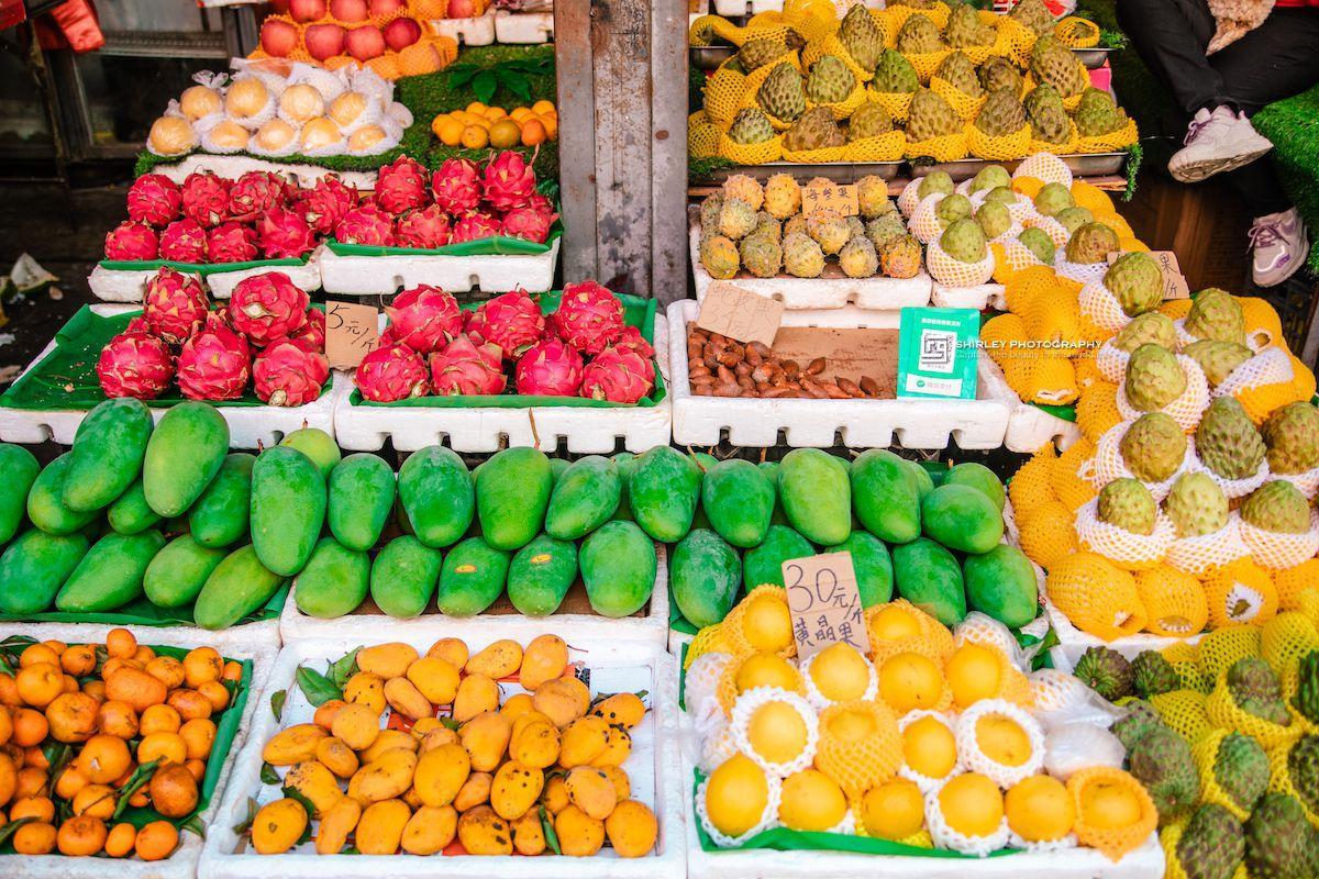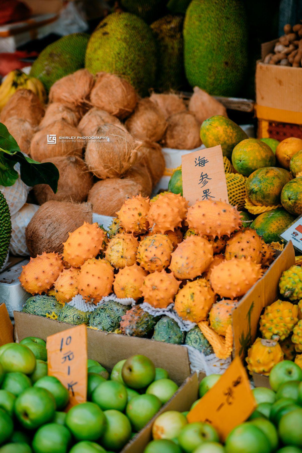 戶外以水果爲主,還有一些可以現買現喫的當地小喫、特產調料之類的。水果種類讓人眼花繚亂,蛇皮果、燕窩果、惡魔果、牛奶果、火參果等等,許多聞所未聞見所未見。對於遊客來說,菜場的確是個獵奇的好地方。