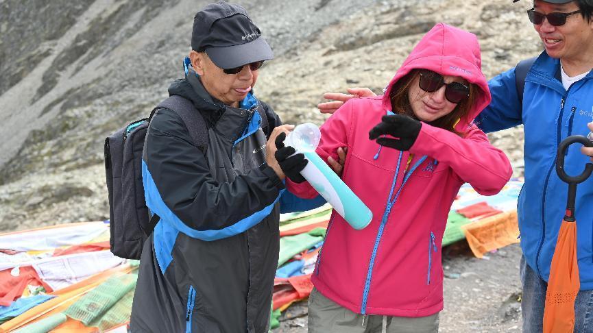 還有一則生動的場景:在西藏打卡聖湖-拉姆拉錯湖時,當車隊到達海拔5200米停車場後,需下車步行爬坡近200米的高度到山頂才能親眼看到這個聖湖(被西藏人民視作的這個聖湖:誰能看見拉姆拉錯湖,誰就能看見自己的前世今生),就爲了能看見自己的“前世今生”,隊友們都帶着氧氣罐相互攙扶着,相互鼓勵着艱難地往坡頂攀登。海拔5000多米的高度,對每個人都是人生的極致考驗,每走一步都必須付出常人難以體會到的艱難與不易。一名女隊友,一路爬坡一路哭泣,到達山頂時又嚎啕大哭起來,爲何?她說這段爬坡給身體帶來極限難受,唯有哭泣似乎才能緩解這痛苦的情緒,最終她憑着隊友的鼓勵和自己的堅韌不拔登頂成功,終於看到了自己的“前世今生”,實現了心中的美好願望。