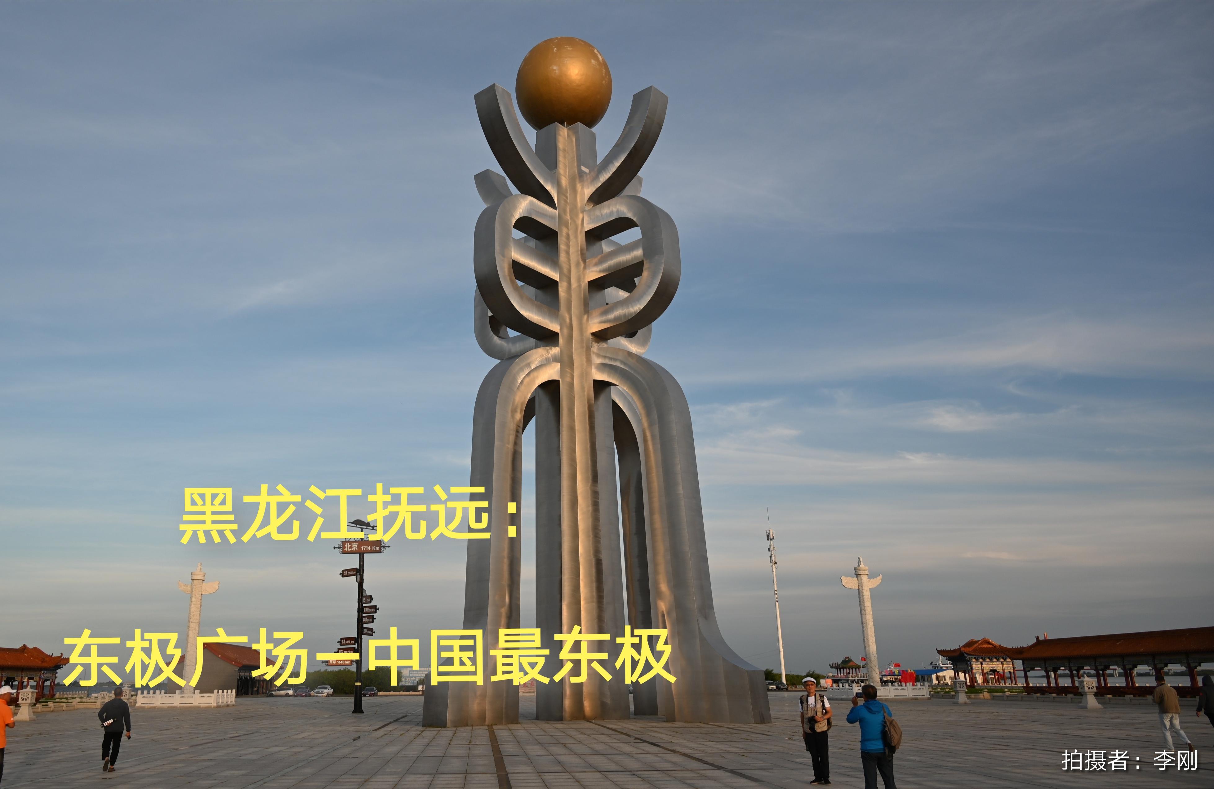 中國的東極點是黑龍江省撫遠縣的東極廣場,在廣場上有一個巨大的“東”字樣金屬雕塑,中國每天最早的太陽就在這遠處東方的天際線上冉冉升起。
