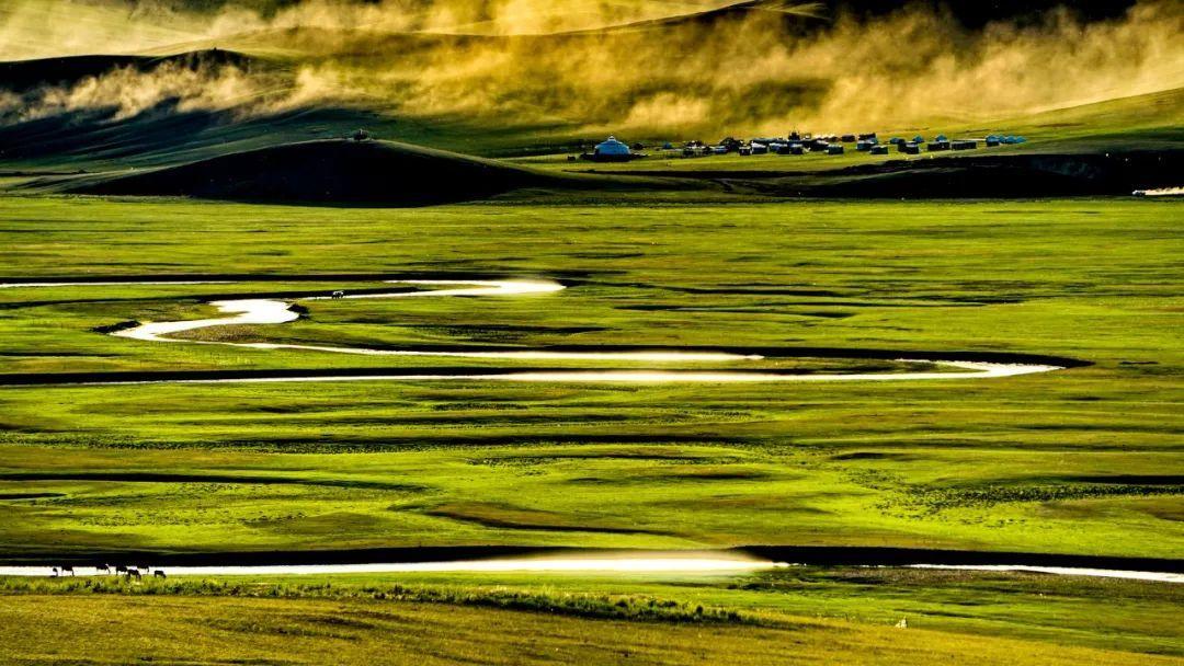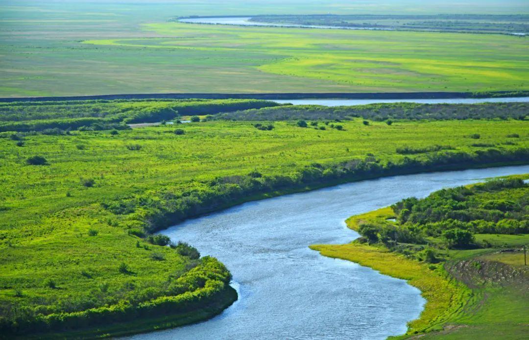 蜿蜒河流在茫茫草原上靜謐流淌,