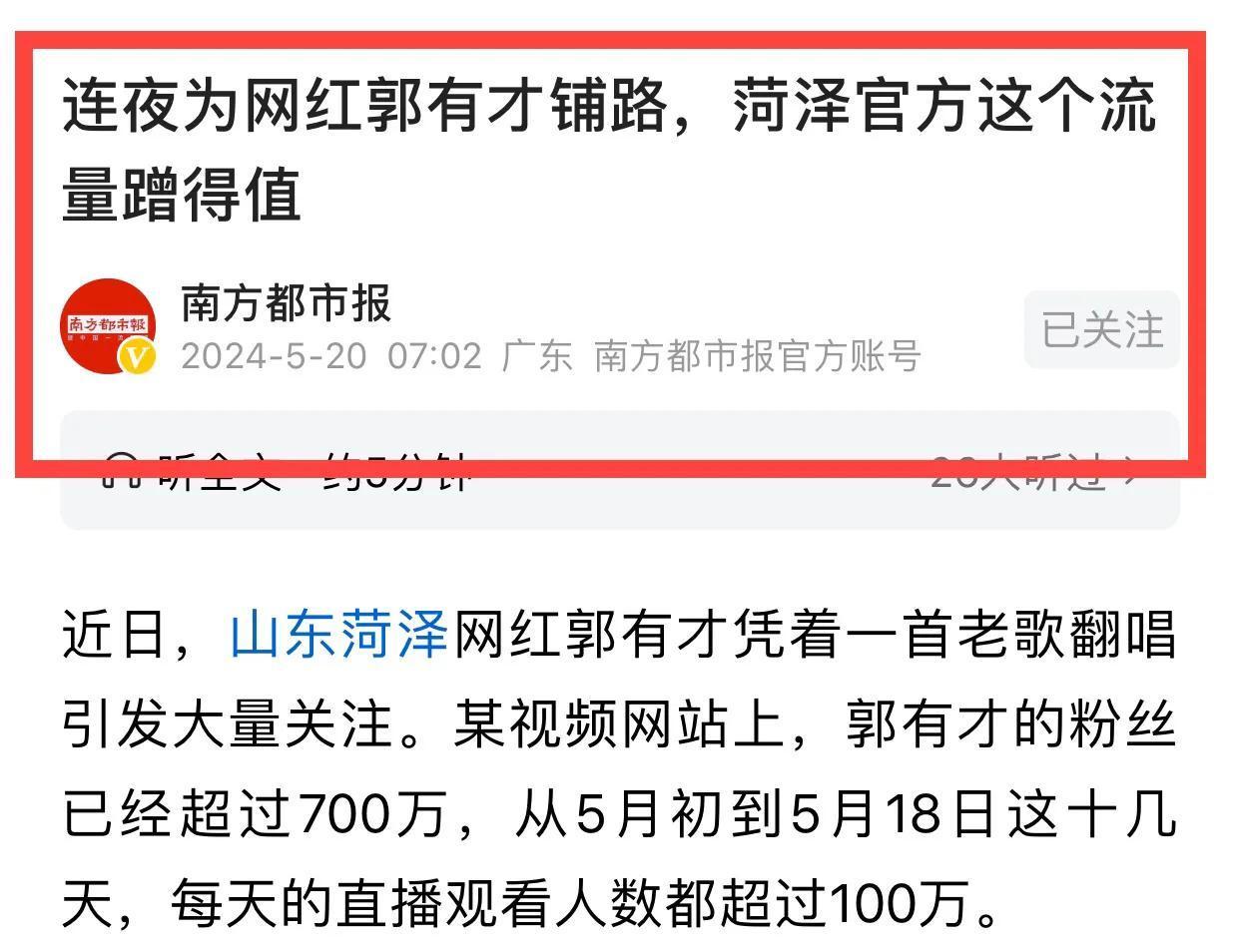 郭有才十天漲粉1000萬,有人眼紅了:被實名舉報菏澤南站官宣停播