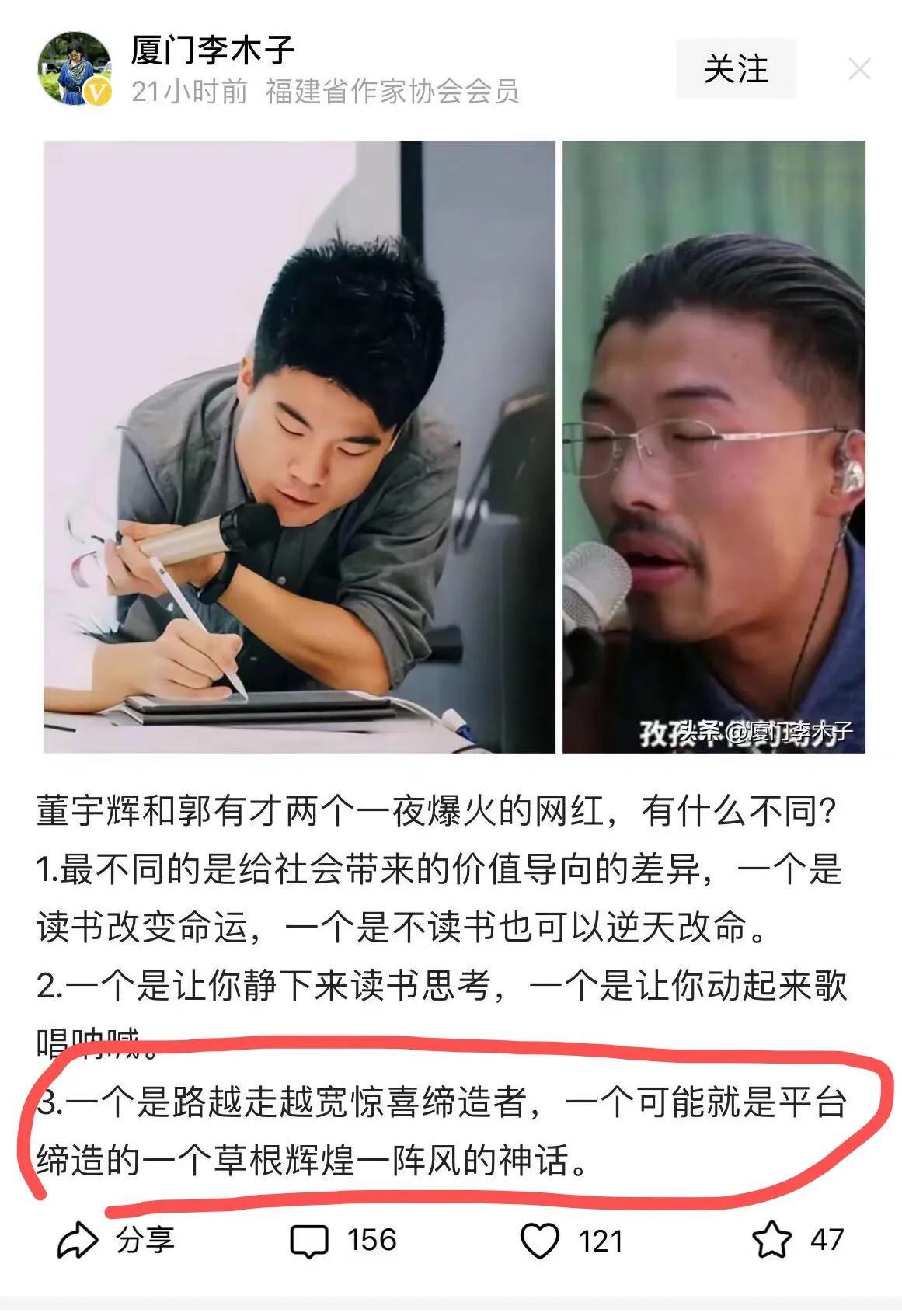 如果郭有才換成是董宇輝,一天賺一個億也沒人敢眼紅,因爲董宇輝是靠實力靠才華來的財富,沒幾個人做得到,你眼紅你來呀。