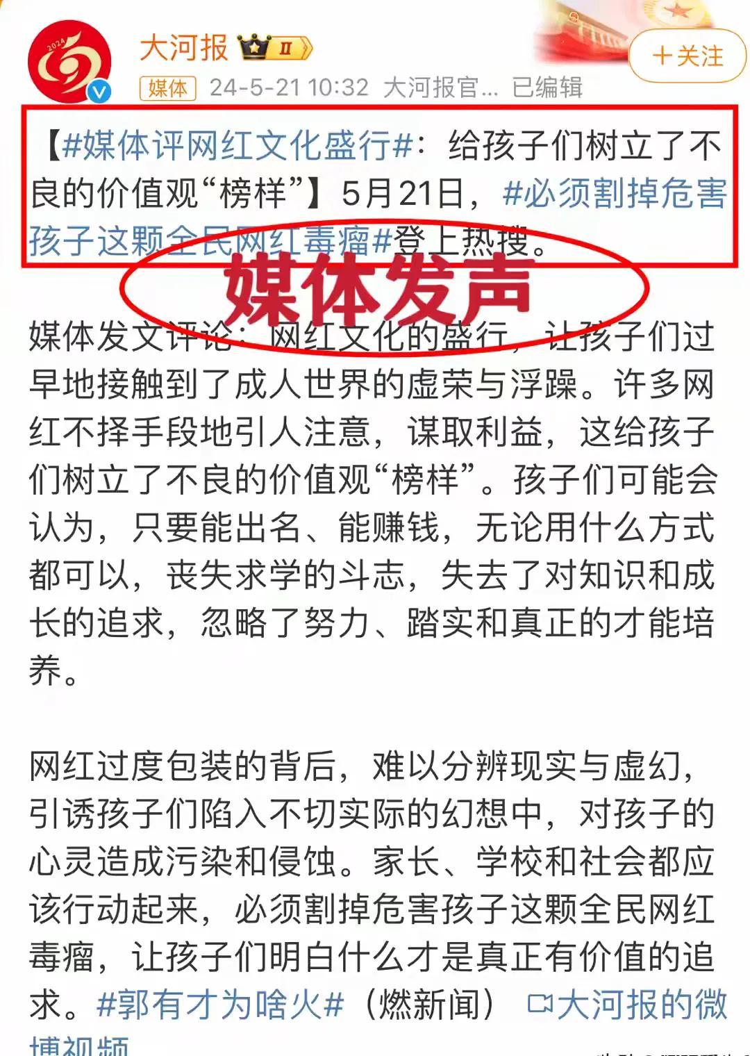 首先害郭有才的是那些羣魔亂舞的網紅,郭有才走紅是天時地利人和,流量是網友給的,感動網友得不是他歌唱得多好聽,而是他人生經歷故事。