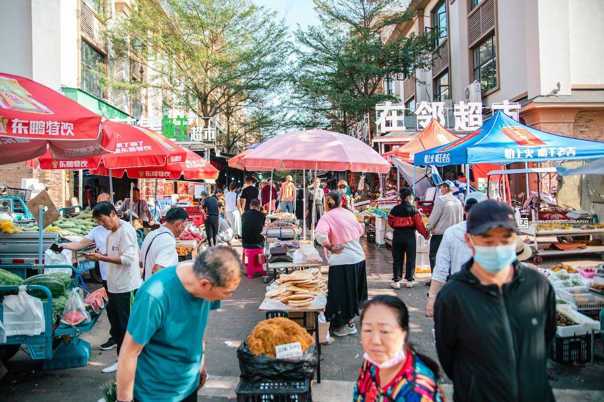 不知道集市是否有正式的名字,只是當地約定俗成call它“東北人一條街”。這條街很長,大部分是上圖這種兩邊擺着攤位的集市;還有一小部分兩邊都是東北餐館,一到晚上露天座位上坐滿了來聚餐的東北人。