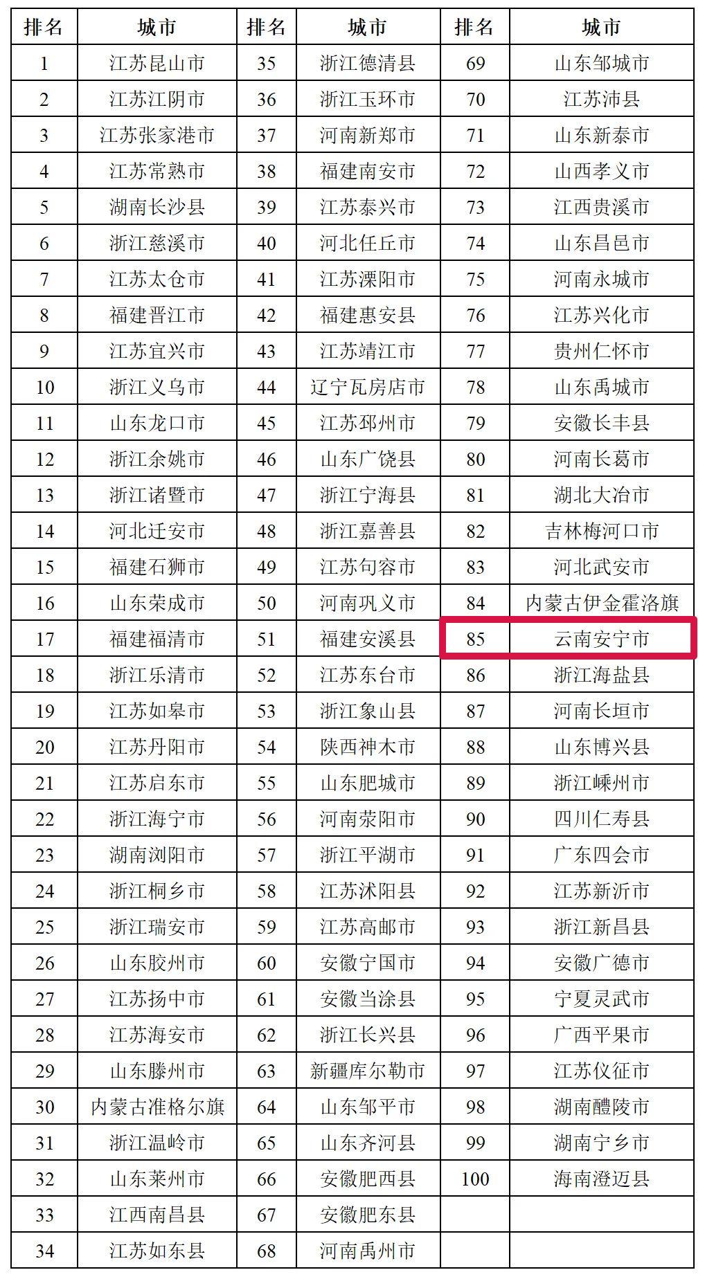 作爲雲南唯一入選的縣市,連續4年上榜“全國綜合實力百強縣市”。
