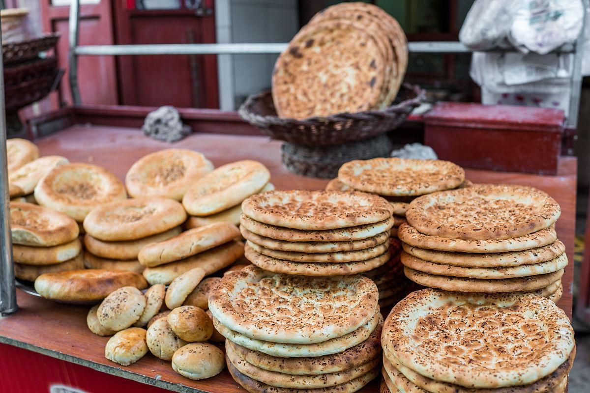 4. 烤饢:阿勒泰的烤饢種類繁多,有油饢、肉饢、芝麻饢等,是當地人的主食之一,新疆饢可以當成主食也可以當成零食,配上酸奶羊肉串一起食用,味道一絕。