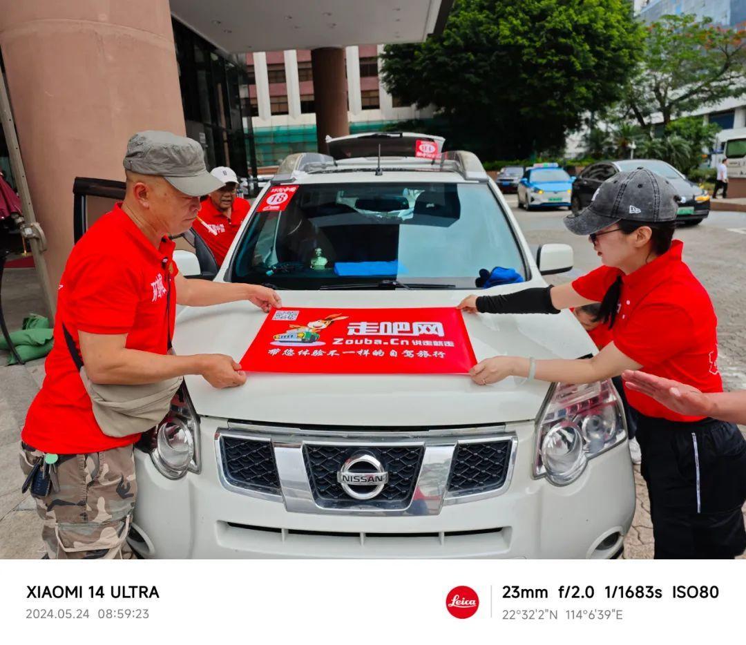 24日領隊東哥及領隊助理陶陶協助勇士們貼“環駕車貼”