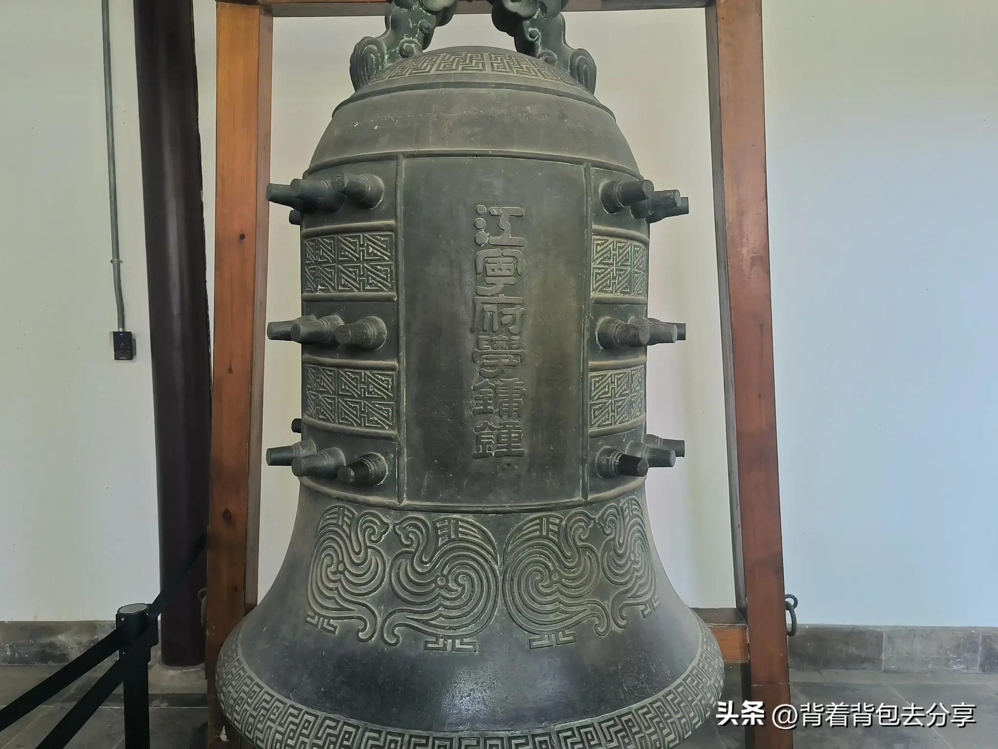 過欞星門後,是文廟一進院落,東西各有兩間廂房,分別是文武官員參加祭孔典禮時休息與齋沐的地方,中間有孔子的石雕塑像,繼續向前,在一側的位置有兩口鐵鐘,右側是明代鐵鐘,爲明代天啓年間魏國公徐弘基所籌,左側是清代江寧府學銅鏞鍾,有銘同治八年歲在己已五月十有五日江南製造總局鑄
