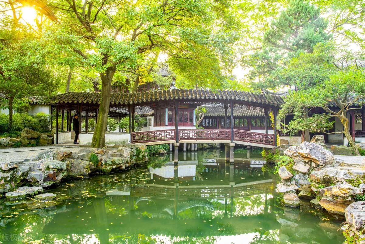 和北京的皇家園林相比,拙政園確實不算大,但論韻味,一點不輸皇家園林。蘇州園林雖小,但以精美著稱,即便方寸之地,造園藝術也能充分體現出來。園林多離不開水,水是園林不可或缺的構景要素,亦是不可替代的韻味載體。拙政園也一樣,而且它地處水鄉,得天獨厚,園裏的水相當豐盈。水源於泉,聚爲池,流爲渠,匯爲湖,曲折相通,遠近呼應,讓滿園景色清婉、靈動。沒有水的風景是死的,毫無韻味可言。