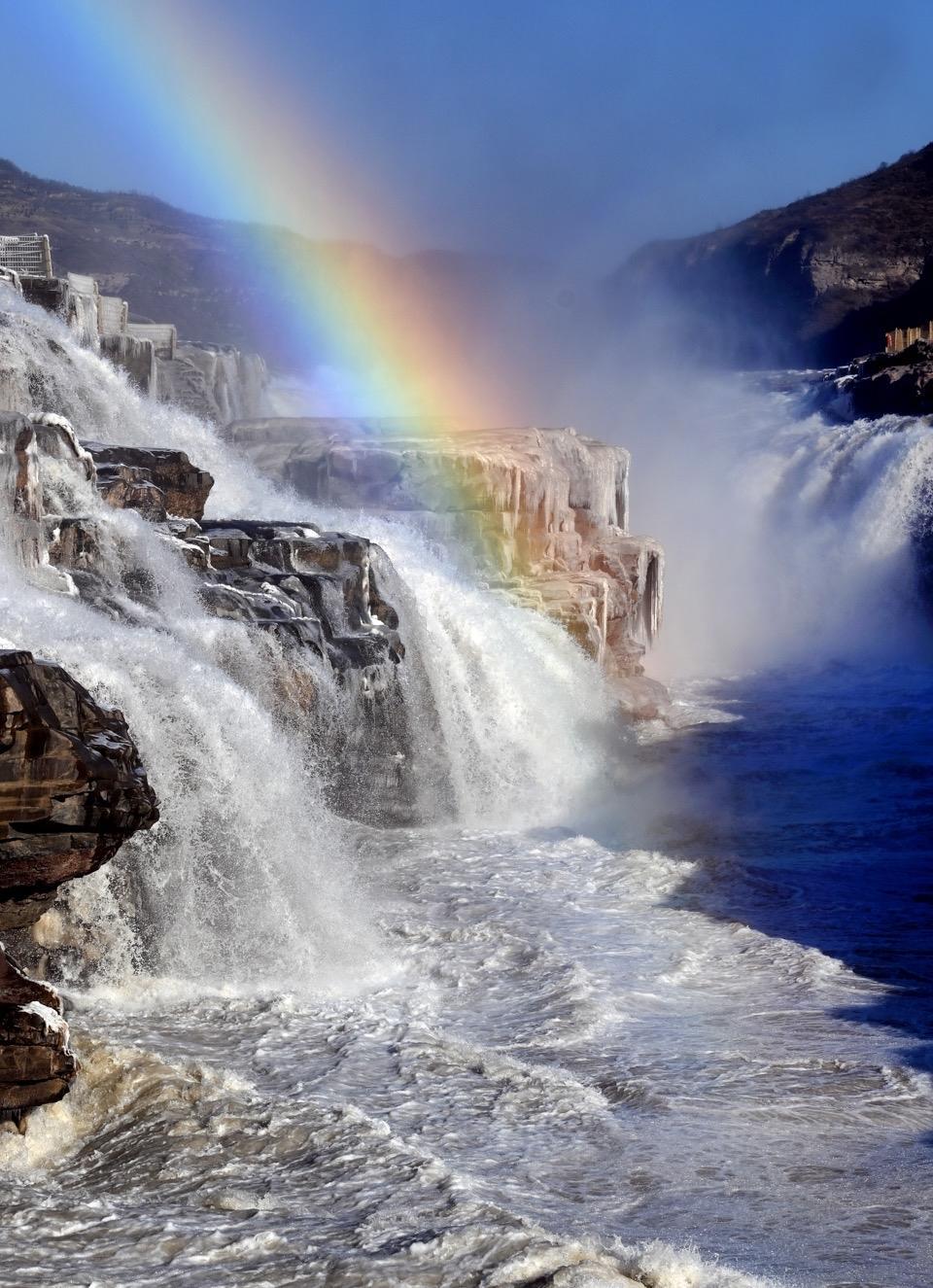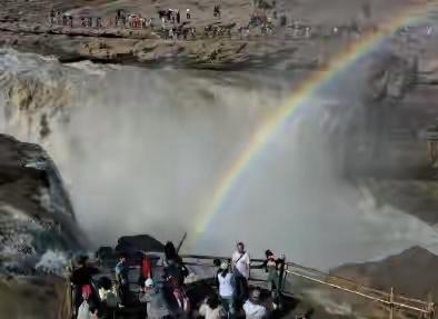 5月27日山西壺口瀑布迎來夏季最壯觀彩虹,瀑布景區遊人如織,隨着雨量增加 瀑布翻江倒海,滾滾滔滔黃河水萬馬奔騰,濺起水花陽光照射下形成了壯觀美麗瀑布,一座彩虹橋橫跨天地間,真是難得一見,還有一個星期端午節假期,強烈推薦去壺口瀑布旅遊,千萬別錯過一年最壯觀時節。