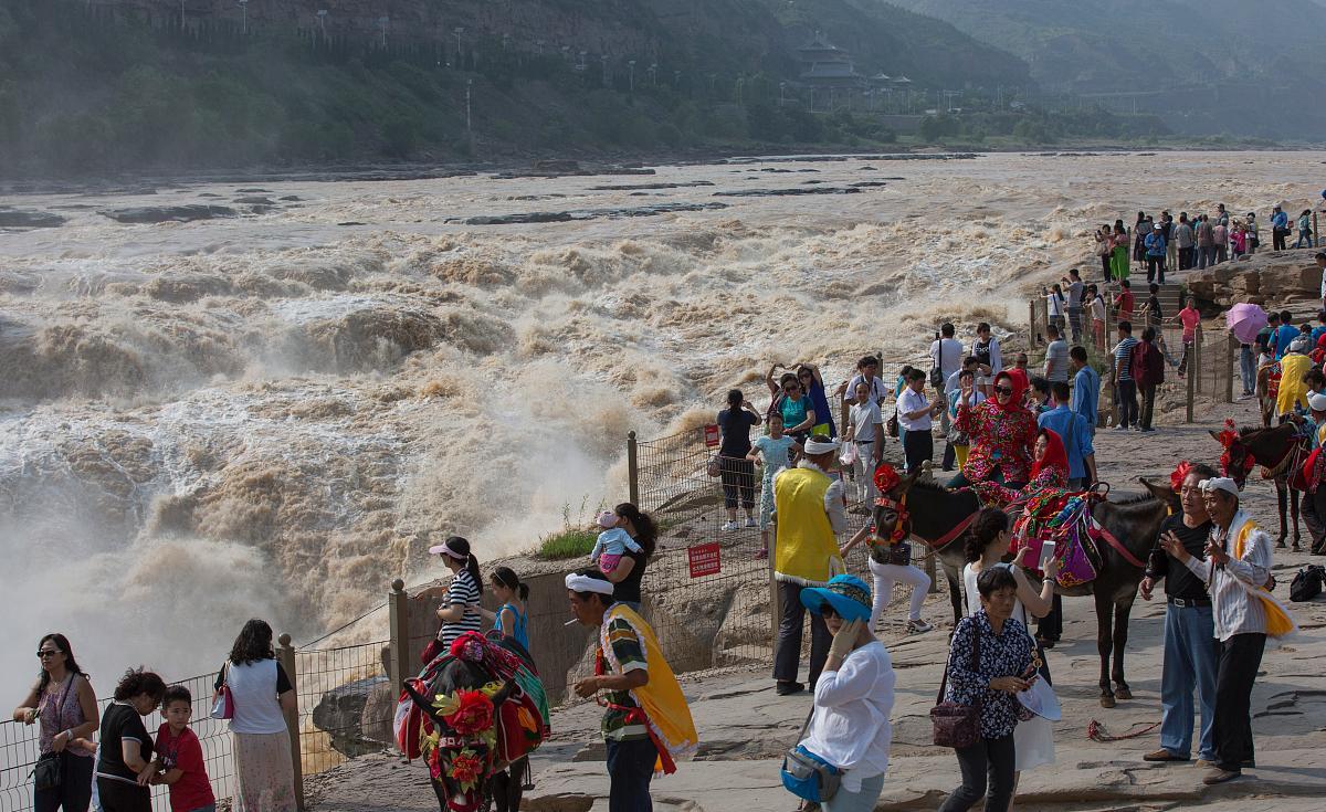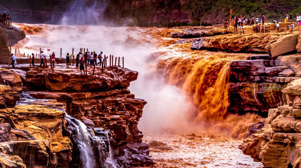 黃河壺口瀑布位於山西省和陝西省交界處,是黃河流經秦晉峽谷宜川段形成的瀑布羣。它是中國著名的瀑布之一,也是世界上最大的黃色瀑布。