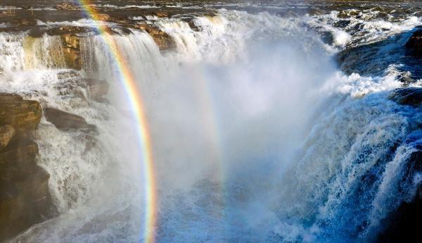 山西黃河壺口瀑布進入豐水期,瀑布前彩虹太壯觀:端午節必去景點