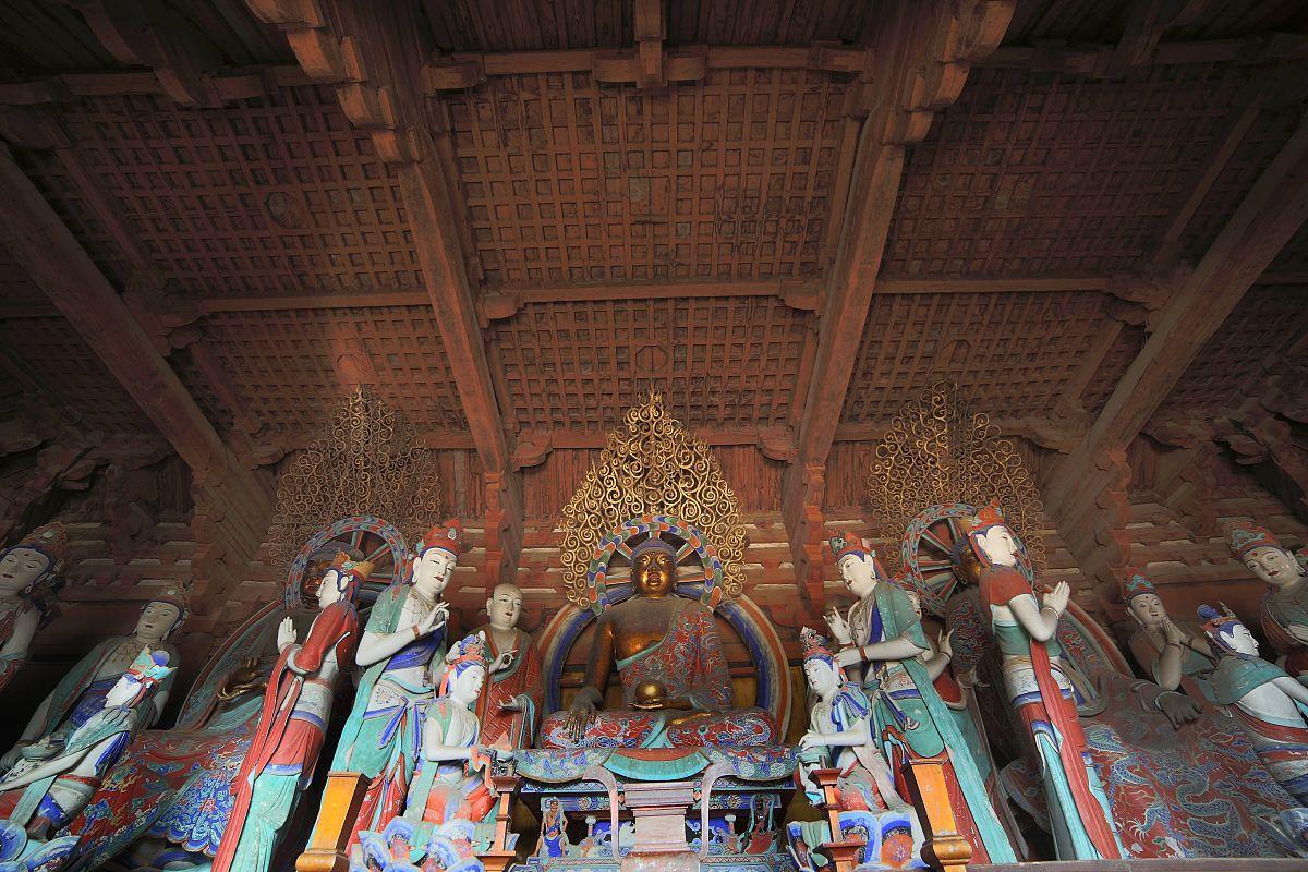 應縣木塔由於年代已久,不開放登塔,只能在下面觀看和一層參觀,一層大殿有塑像。