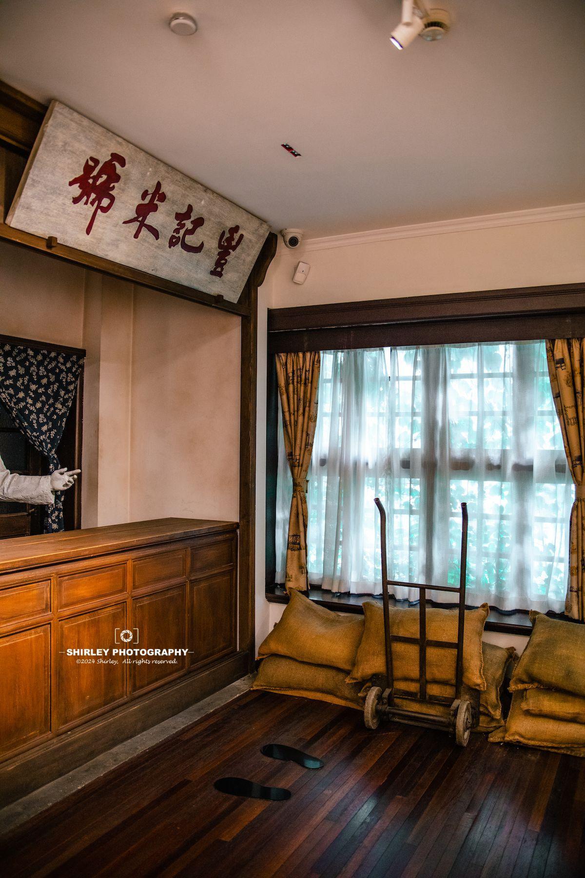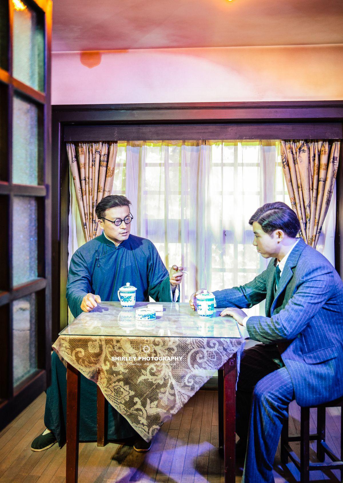 一些場景的還原令參觀者身臨其境,蠟像也都做得很逼真。比如有一處“豐記米號”場景,其實是過去的祕密聯絡點,承擔了重要的情報中轉工作。當時門口的這輛推車擺法也很有講究,正放表明一切正常;如果是倒放則說明店內出了狀況,同志們再也不能進店裏去了。