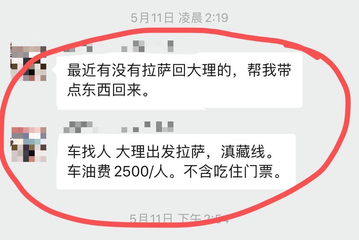 筆者在雲南,前次我們討論了一下關於從昆明大理出發去西藏要多少錢,羣裏有人自駕遊路上撿人,準備賺點油費,大理出發去拉薩2500元一個人。