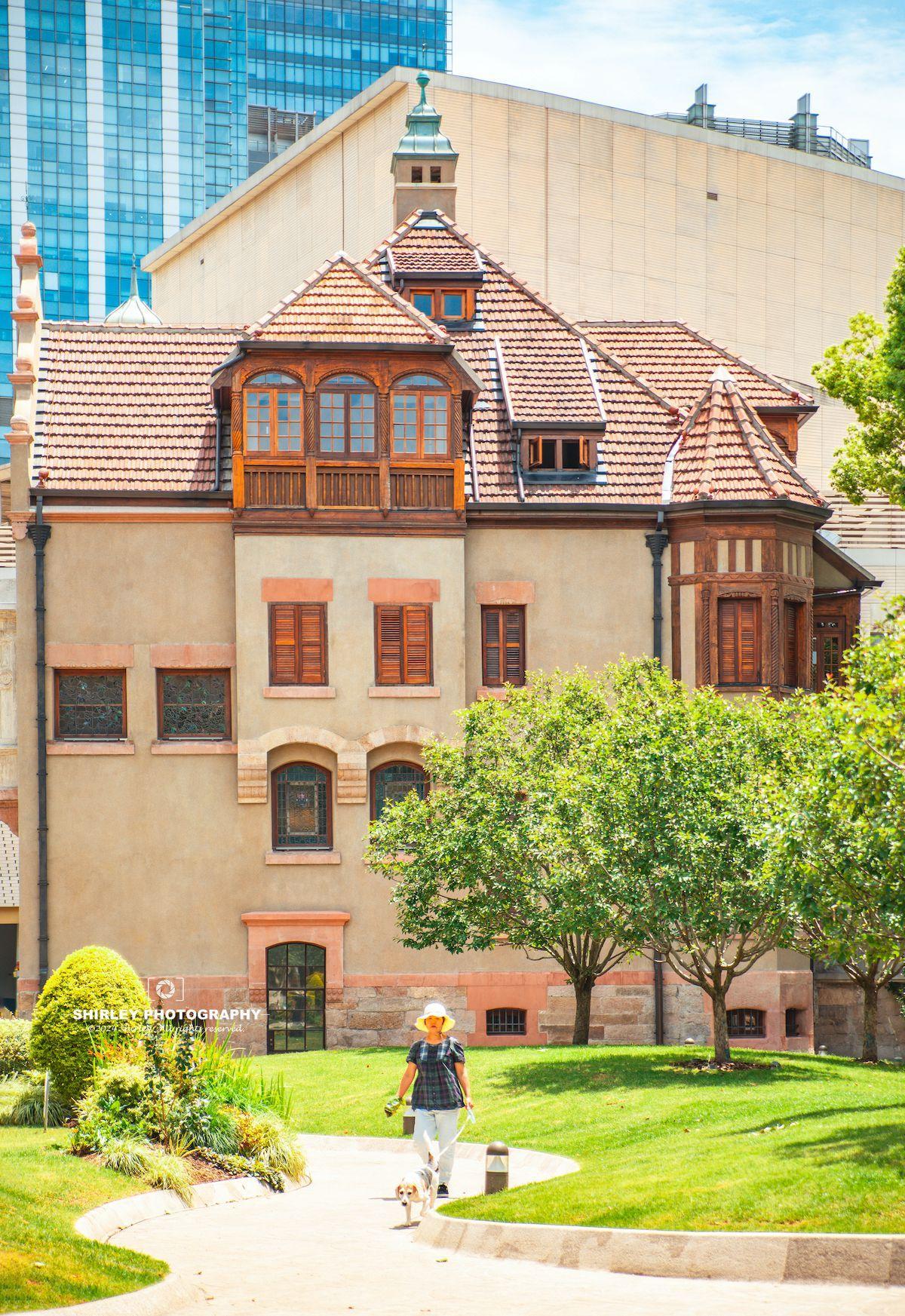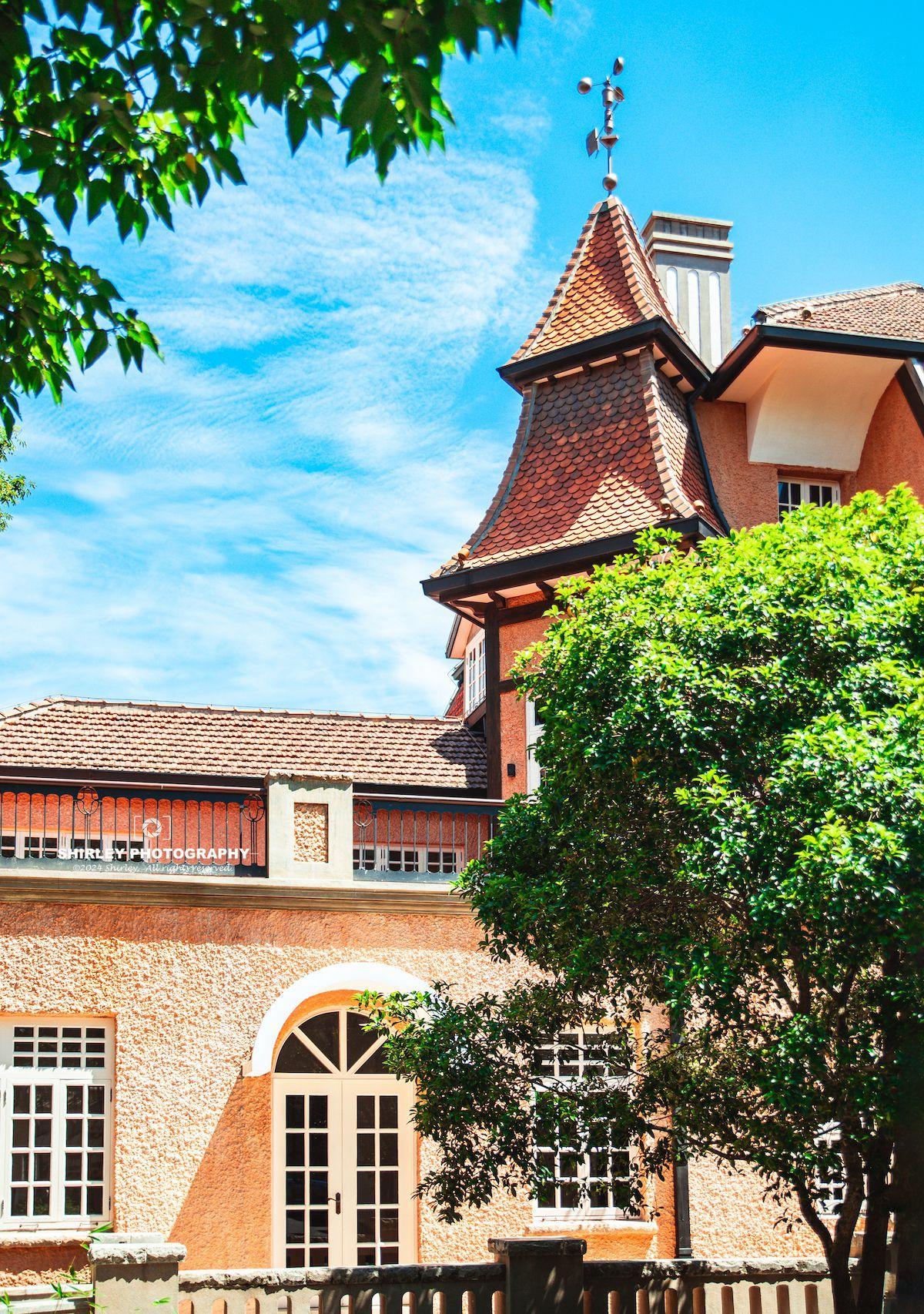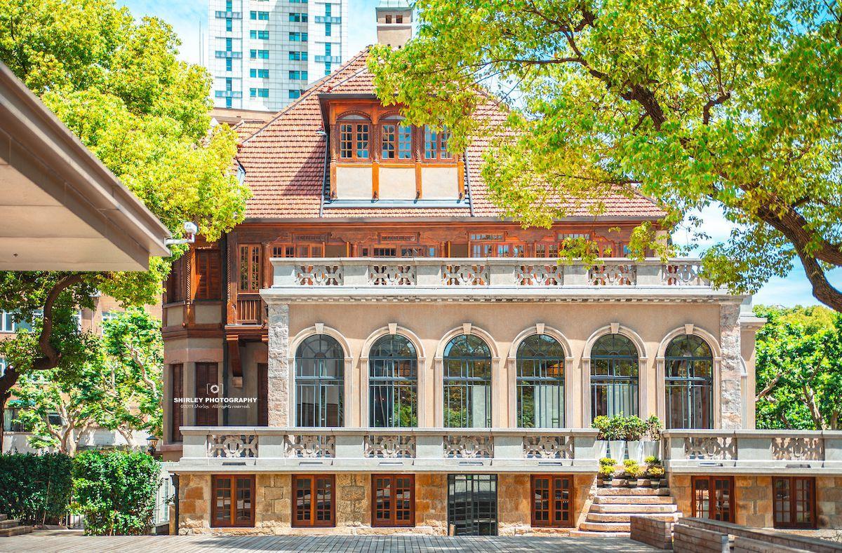 上音最網紅的歷史建築,無疑是這座被大家親切地稱爲“音樂城堡”的建築。2022年圍欄拆除後,這座建築始建於1926年的四層德式花園住宅就讓大家驚豔無比。紅瓦屋頂、青銅冠頂、巴洛克式山花、希臘式凸窗、羅馬式柱頭……典型的巴伐利亞風格,充滿想象力,在陽光下美得360度無死角。過去這裏曾經是圖書館,也是前院長賀綠汀先生的辦公地點。