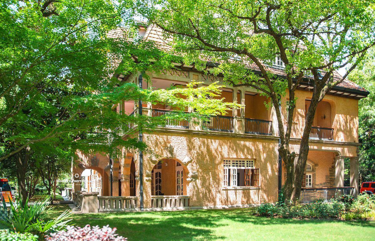 始建於1912年,法國文藝復興風格,具有上海早期外廊式建築特點的獨立花園住宅。原爲猶太富商愛德華·埃茲拉的住宅,馬海洋行設計。它還有個氣派的拉丁文原名——Adeodata Hall,意爲“天賜大宅”。今天,這棟“天賜”大宅,成爲了上海音樂學院國際音樂教育的重要基地。