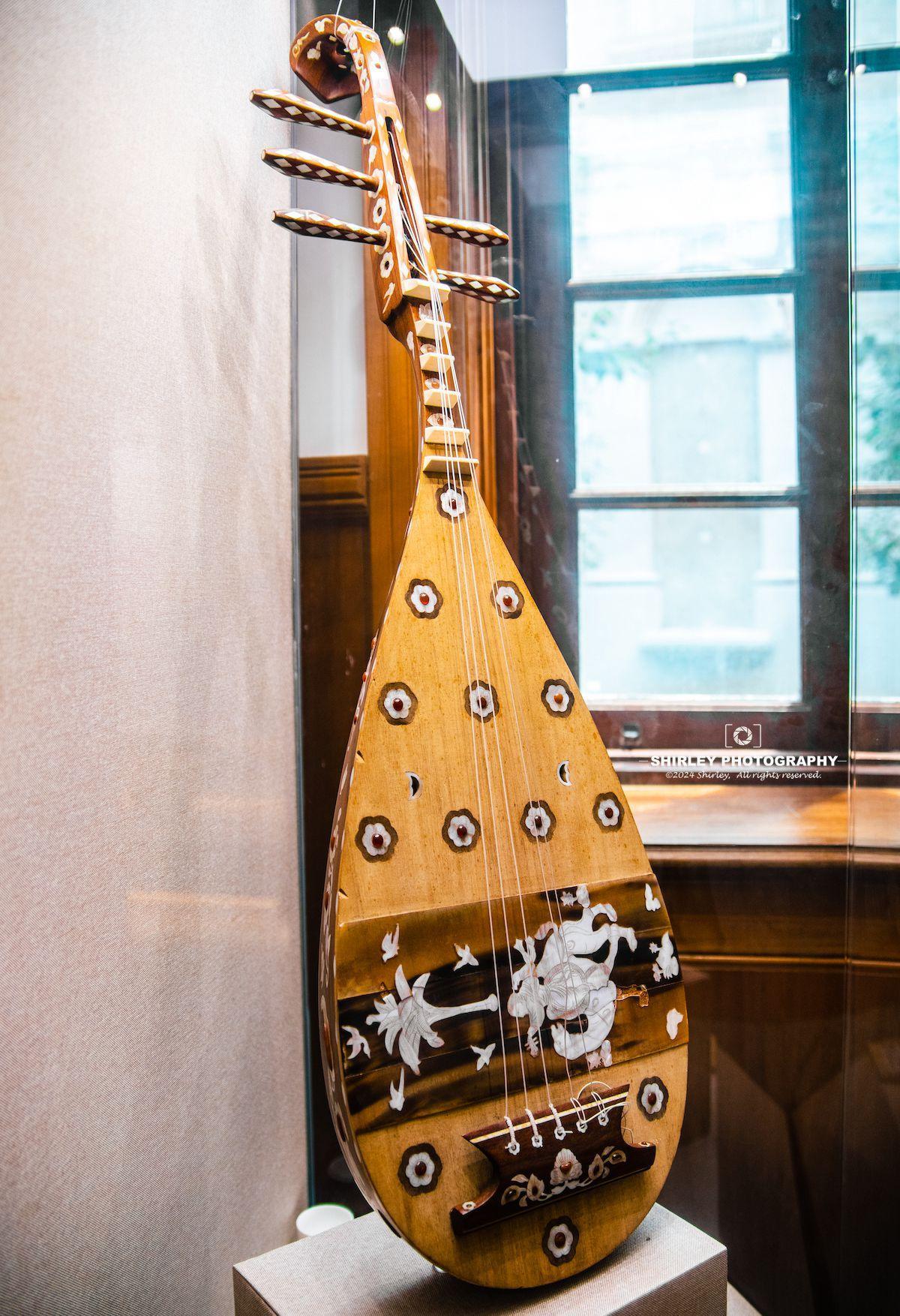 比如迄今發現的人類最早的管樂器、有8000多年曆史的賈湖骨笛複製品;還有仿唐五絃琵琶複製品,正品在日本正倉院,上面鑲有翡翠、瑪瑙等裝飾,十分精美。在這裏,樂器不僅僅是用來演奏音樂的,更是一件賞心悅目的精美藝術品。