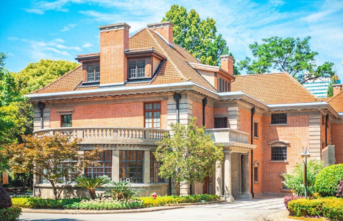 始建於1936年,是一棟典型的英式假三層花園住宅,外牆爲醒目的磚紅色。屋頂形式豐富,局部的立面非常簡潔,具有英國都鐸風格特色。這棟洋房解放前曾經是滬上某位風雲人物的私宅。後來,上海音樂學院將其規劃爲美育樓,目前作爲東方樂器博物館的場地使用。正在舉辦的展覽是《絲路隨響暨“一帶一路”合作倡議提出十週年樂器文化展》。