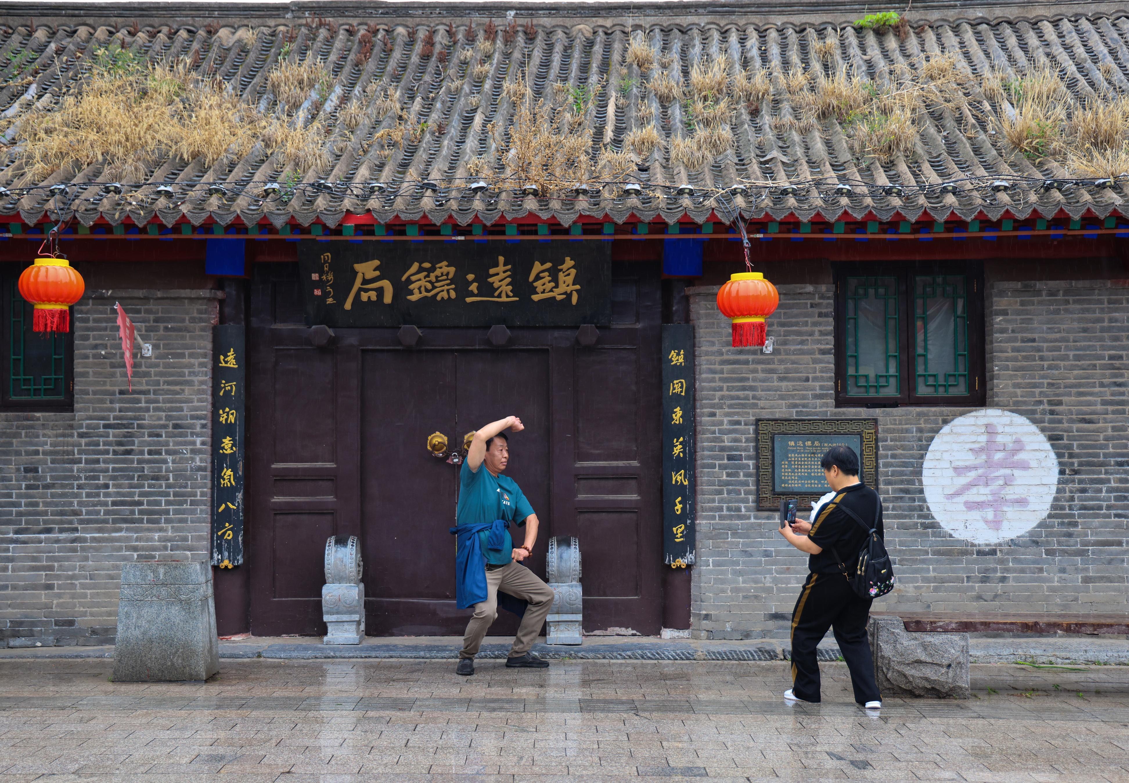 遊客在山海關古城-鎮遠鏢局外拍照留念 中國旅遊報記者 曹雪文 攝