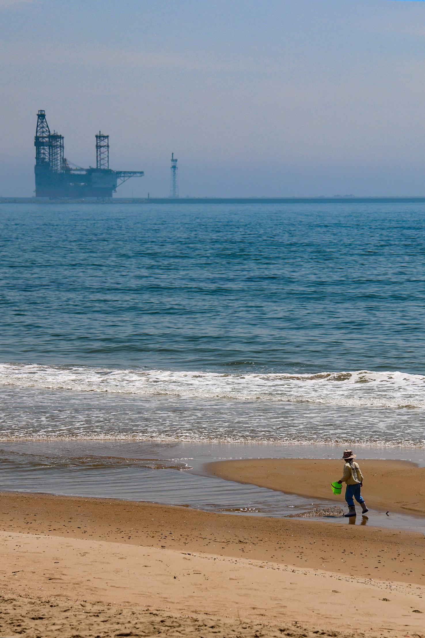小遊客在老龍頭長城旁的海邊玩耍 中國旅遊報記者 曹雪文 攝