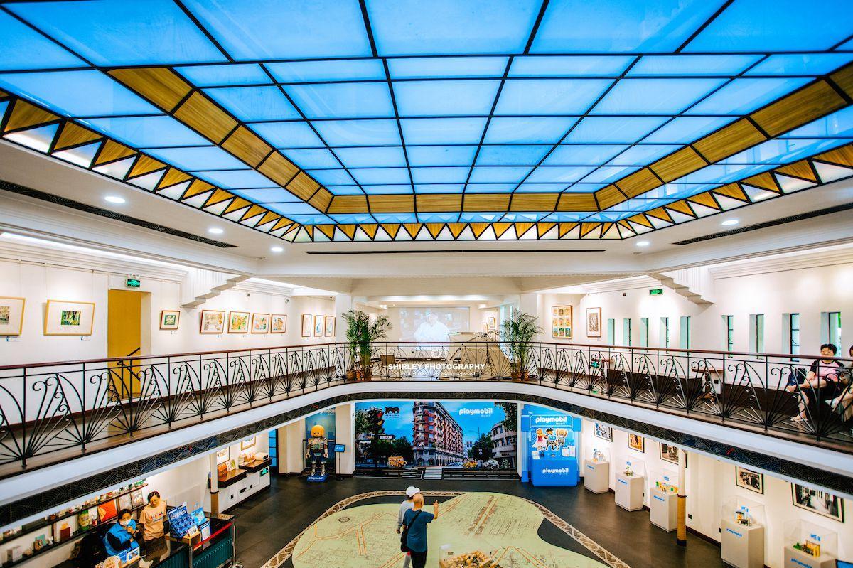 目前內部是“摩比世界”舉辦的藝術展,展覽主題緊扣“武康大樓100週年”。現場不僅展示卡通微縮版的武康大樓模型,還用玩具世界視角還原了大樓內部場景,爲這座老建築增添了一份童趣。