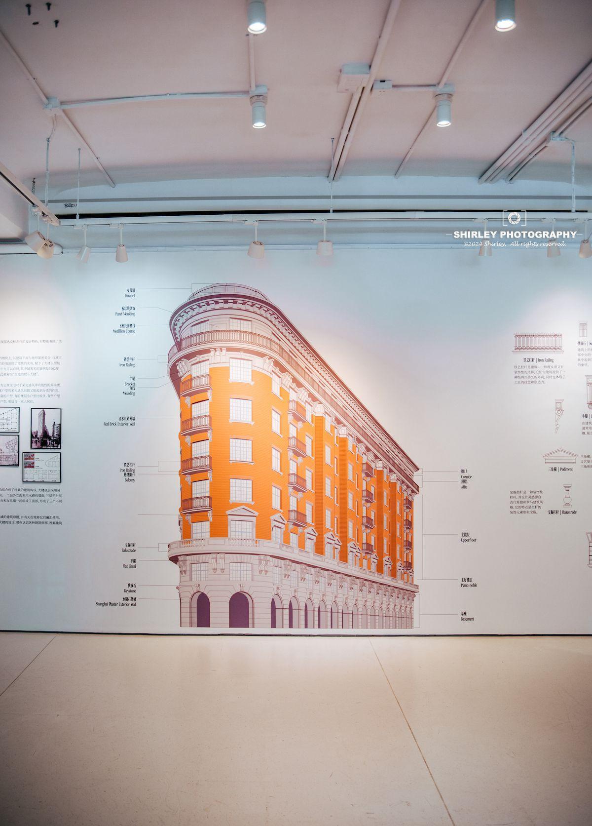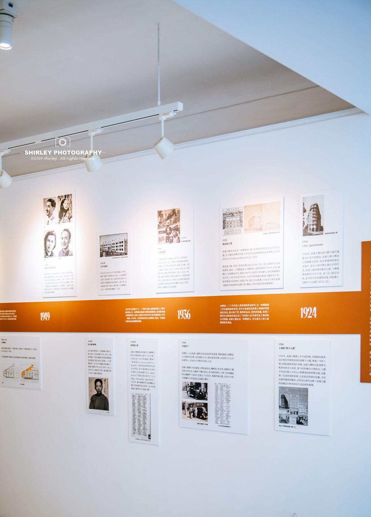 今年正好是武康大樓建成100週年,因此武康大樓一層沿街的“城市交集”畫廊裏,有一場關於這座老建築的限時免費展覽可以看。展覽通過五個部分的展示,以建築作爲切入視角,結合居住歷史及街區變化,展示這艘巨輪承載的城市文化,可以通過圖文、地圖、老照片等詳細看到武康大樓的前世今生。