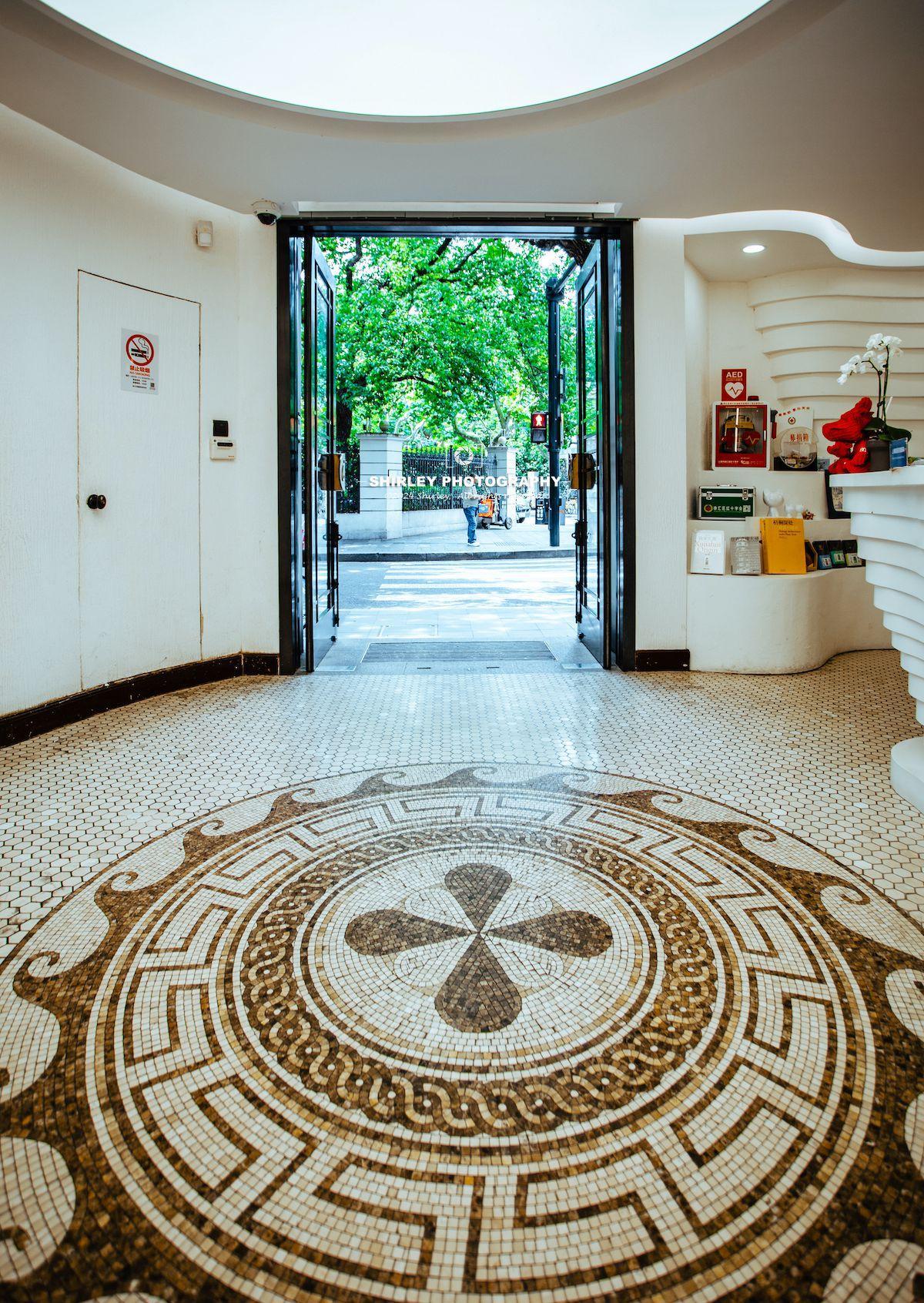 一樓入口處的馬賽克地磚就彰顯着老上海風情。內部整體呈環形布展,中庭區域上下兩層貫通;因此進去就能看到裏面標誌性的彩色玻璃穹頂,至今風華絕代,如此規模在上海的老建築裏也十分罕見。