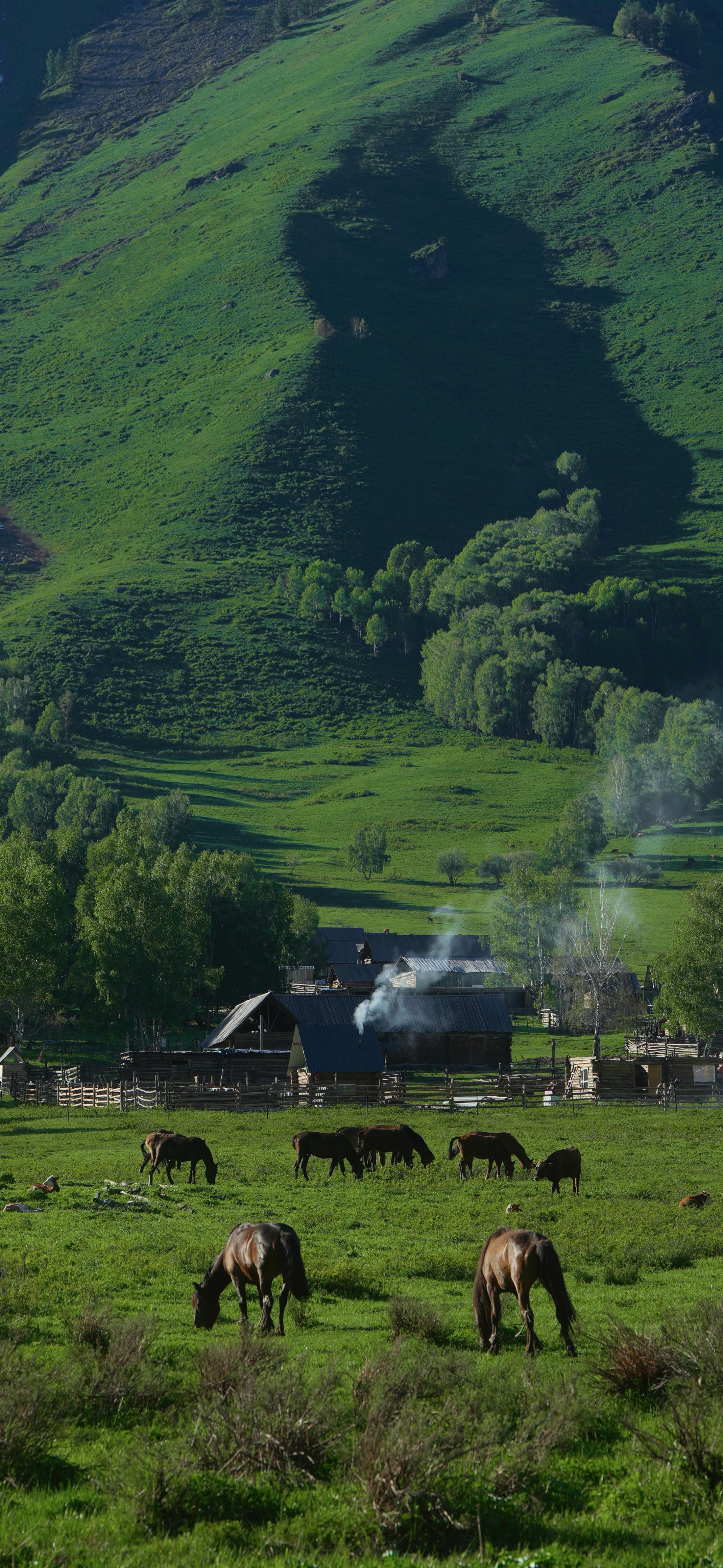 “在大自然的鬼斧神工下,暈染出童話般的村落。藍天白雲下,森林、樹屋、河谷、草原觸手可及,潺潺流水叮咚作響……處處都是美景,就像作家李娟所寫的‘碧綠的山谷,閃耀的卻是金光’。民宿不遠處就是吊橋,沿着橋一直走就能到觀景平臺,在這可以俯瞰整個禾木村。晨霧瀰漫,仿若到了仙境,我們便騎着馬,向着山腳下的晨霧追去。”95後木木端午假期在位於新疆布爾津縣禾木村的西融禾木民宿住了兩天,如詩的生活讓她回味無窮。