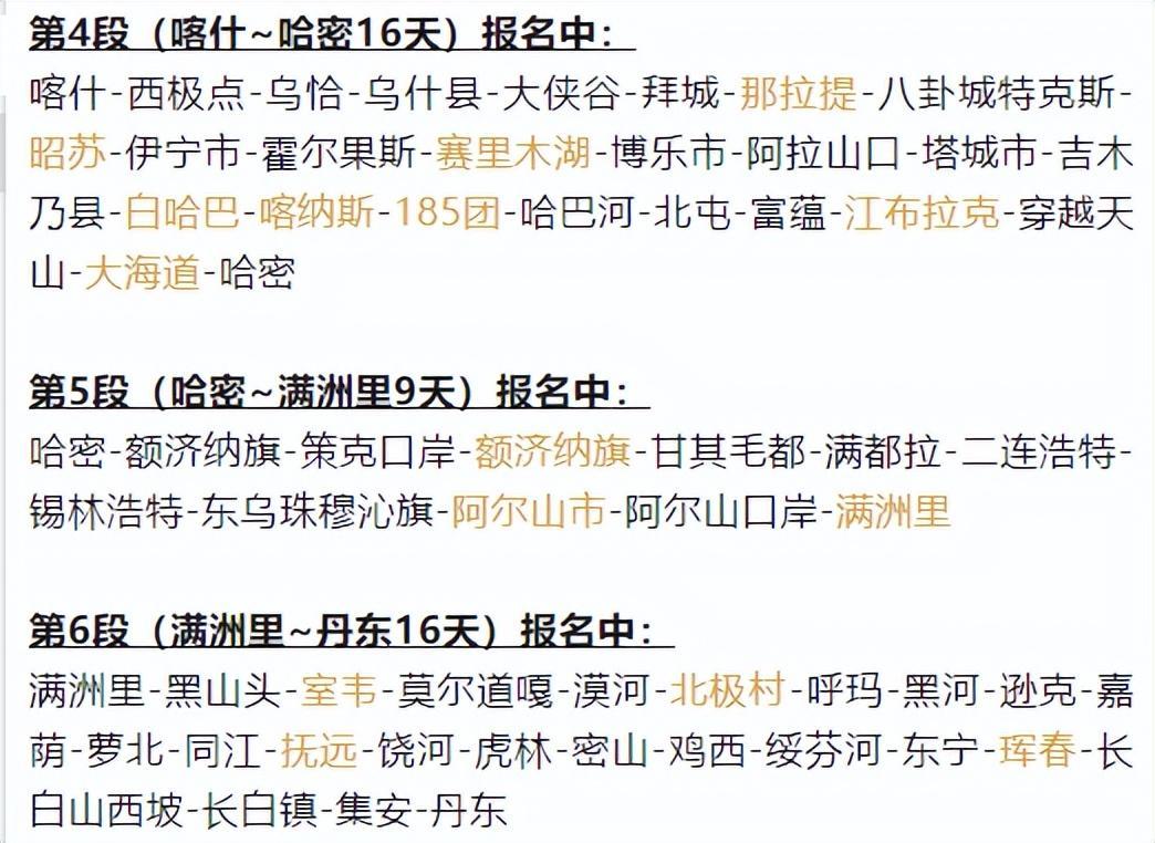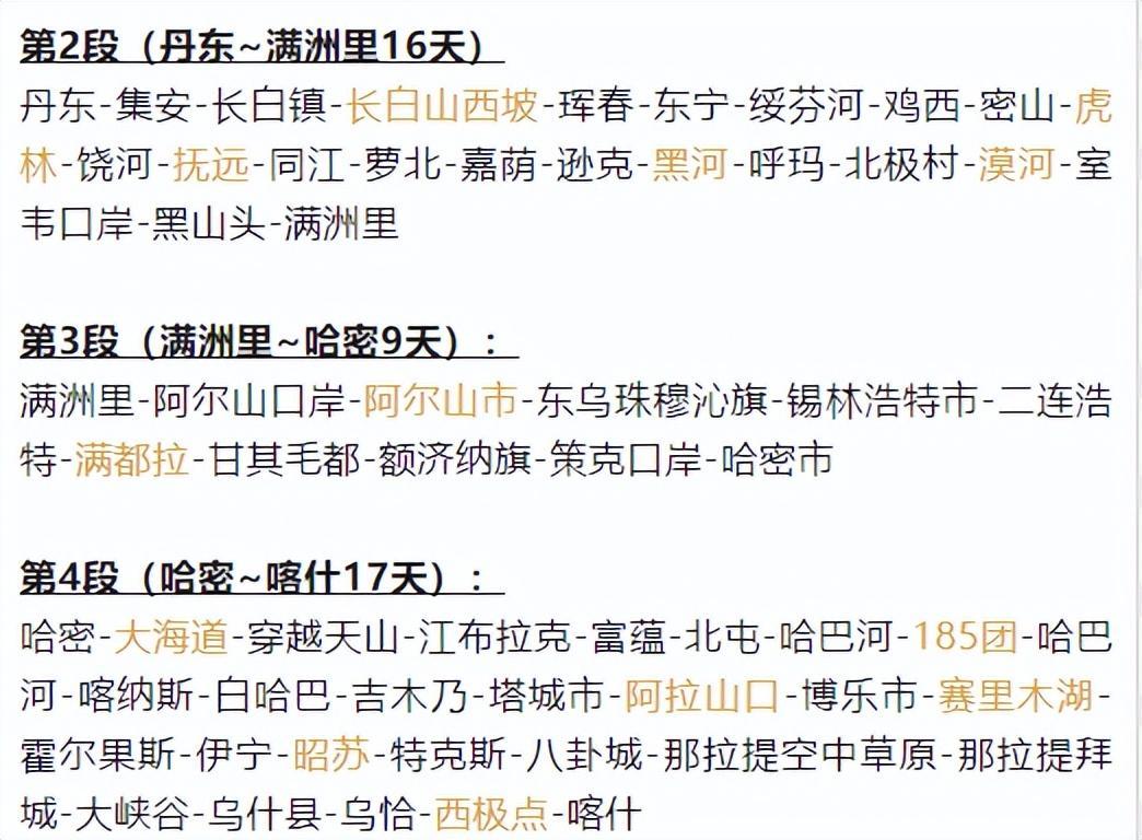 路線:第4-6段(喀什~哈密~滿洲里~丹東)