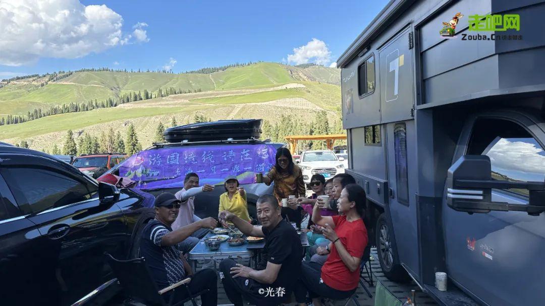 最讓我們難忘的還有一起全程完成環駕的車友們。2號車是一輛SUV改裝的牀車,車主是老周小周夫婦。老周燒的一手好菜,白天開車辛苦一天後,到了營地,還要爲我們燒出一桌菜餚,而且永遠是按標準出菜,從不敷衍。我出行歸來體重增加了好幾斤,全是他的功勞。而他的膝關節也有傷,行走登山往往很喫力,有時寧願放棄觀景也要爲我們準備飯菜。小周則是“菜鳥團”團長,因爲是牀車,每天早晚都要辛苦地將車內的物品搬前搬後。即便如此,她依然爲大家做行程攻略,再晚,也要研究清楚,並在羣裏發佈第二天的行程路線、景點、露營地。我們能順利完成環駕,她功不可沒。