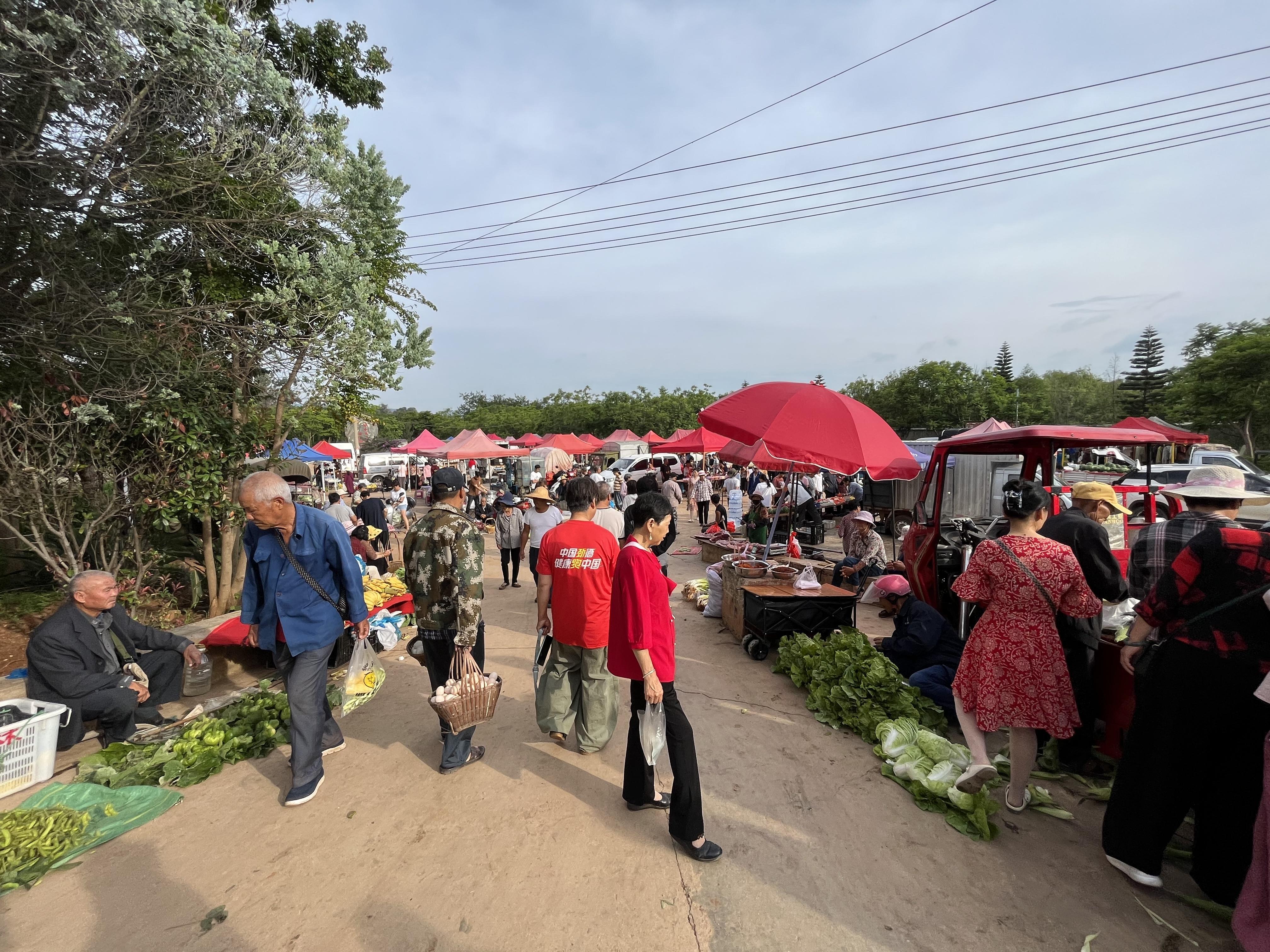 摩托車騎行一路去拉薩,來到玉溪江川區,路居鎮,下壩村(下壩溼地公園)邊上早晨集市露營兩天。