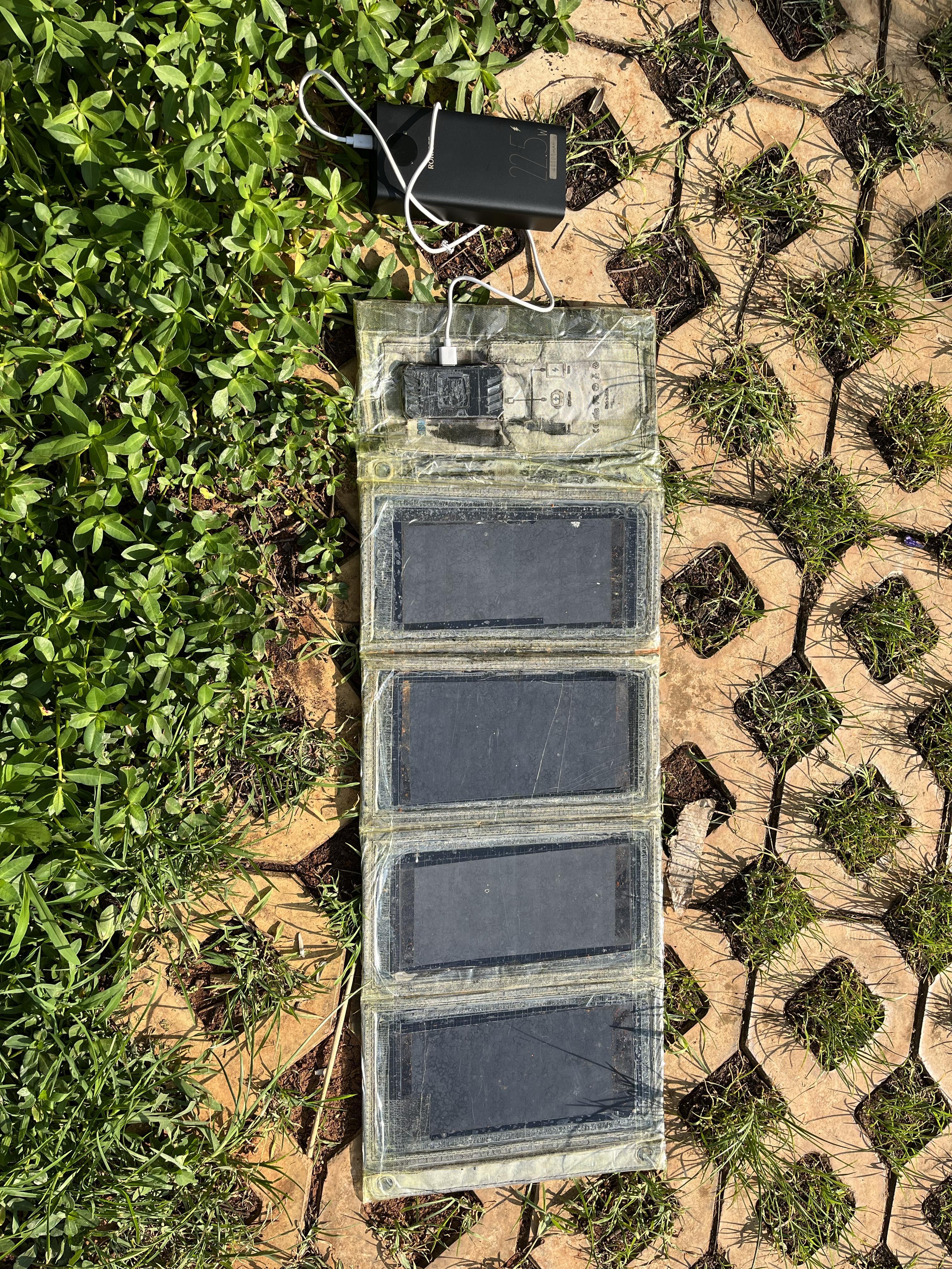我沿途用電就是靠太陽能電池板,早晨然後集市擺攤散場之後,把(充電寶、太陽能板)放在廣場空地充電,大約是10點半到11點半,曬好太陽能,我回帳篷裏刮鬍須,然後再次看太陽能充電寶都不見了,當時心裏好緊張,頓時懵了,沒了太陽能和充電寶就等於沒了喫飯工具,丟了喫飯的碗一樣,我問擺攤補衣服裁縫大哥,掃地兩位阿姨都說沒看見誰拿走了,然後我找遍了周圍垃圾桶都沒有。