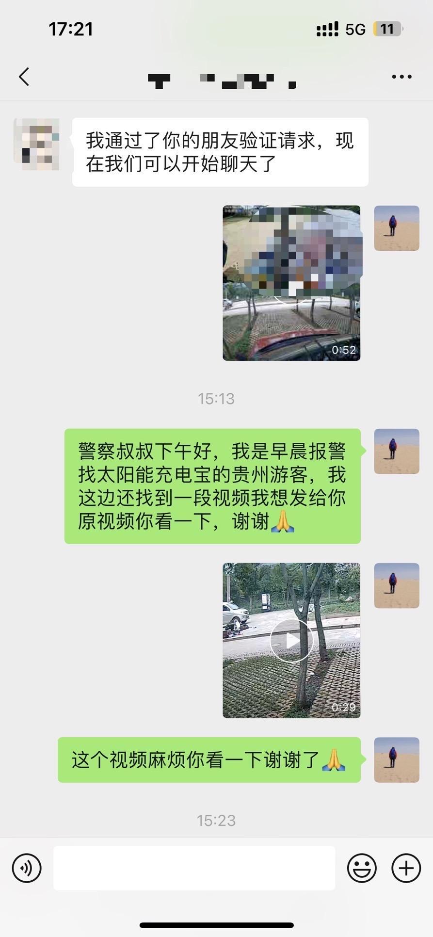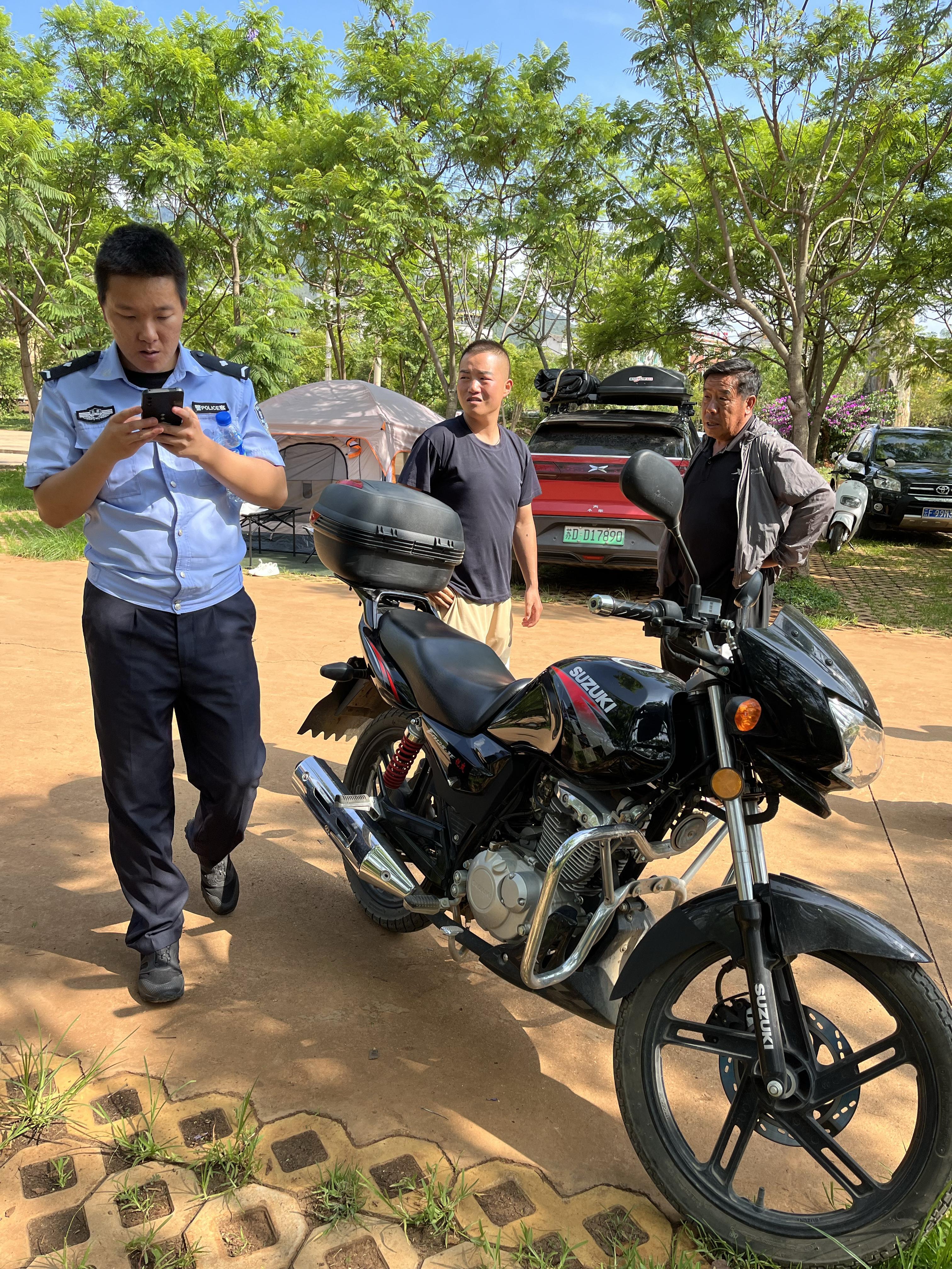 結果中午十二點村委會可能下班了,陪我去東北大叔說門口牆上有有社區民警電話,我就打了社區民警叔叔電話,社區民警叔叔快速回復我,然後來了兩位警察叔叔詢問了情況,我提供了車載監控視頻,兩位叔叔經過半天努力,終於把我充電寶找回(失而復得),警察叔叔當時打我微信語音,因爲手機沒電,沒接聽,兩位警察叔叔直接跟我送到露營地,我提供身份證登記,領取失物。