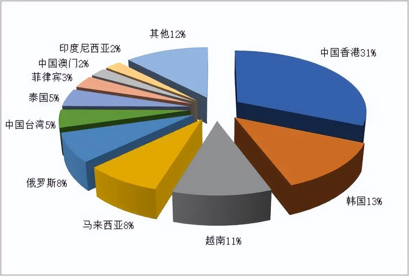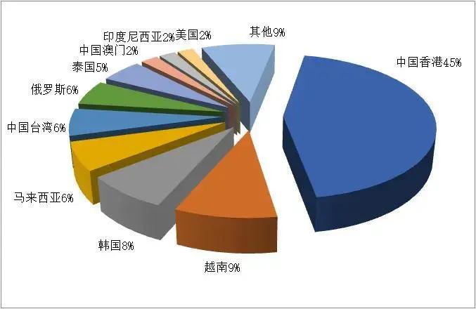 第一季度旅行社入境旅遊接待人次排名前十位的客源地國家或地區由高到低依次爲中國香港、越南、韓國、馬來西亞、中國臺灣、俄羅斯、泰國、中國澳門、印度尼西亞、美國。(見圖4)