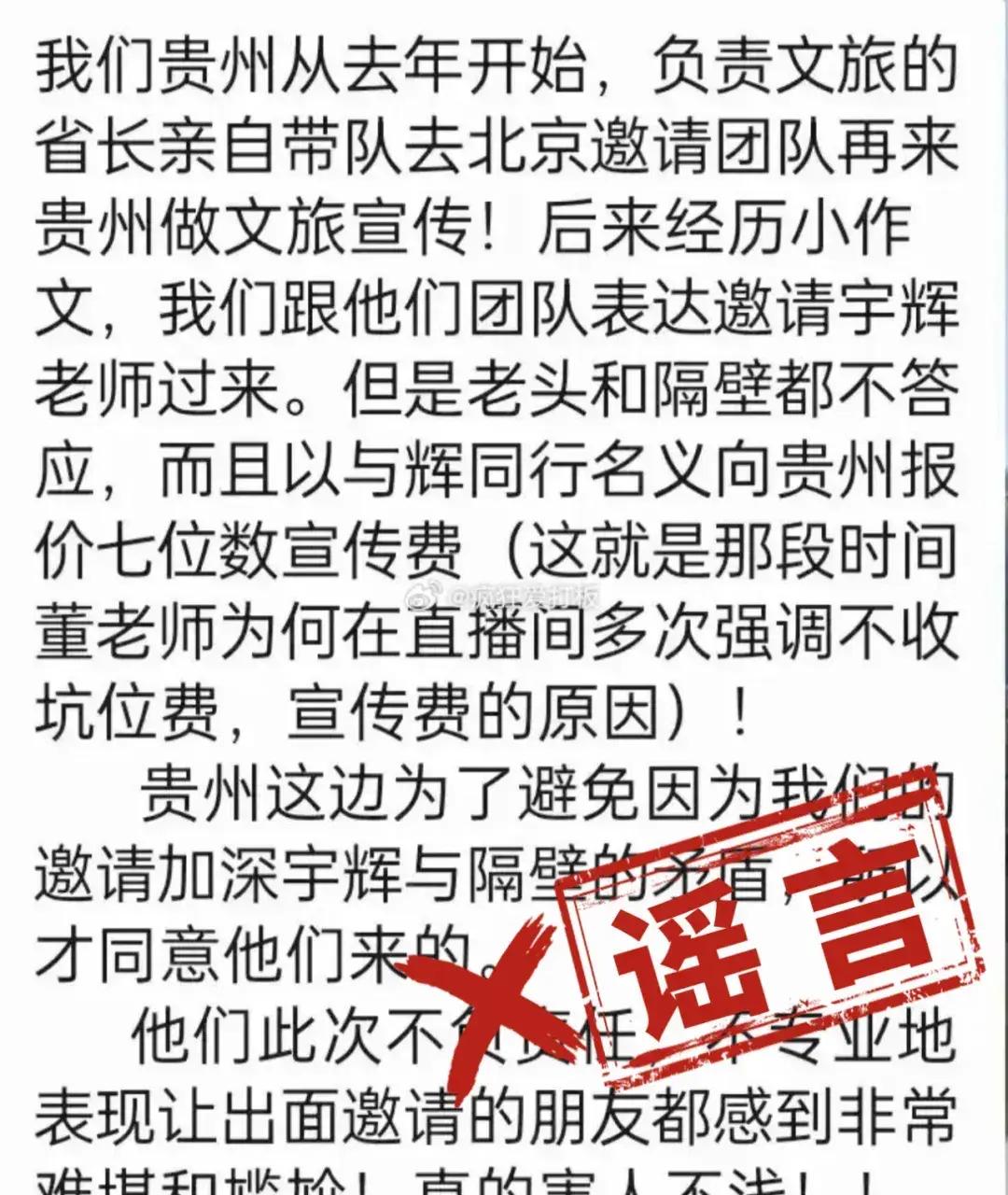 “我們貴州從去年開始,負責文旅的省長親自帶隊去北京邀請團隊再來貴州做文旅宣傳,而且以與輝同行名義向貴州報價七位數宣傳費。”