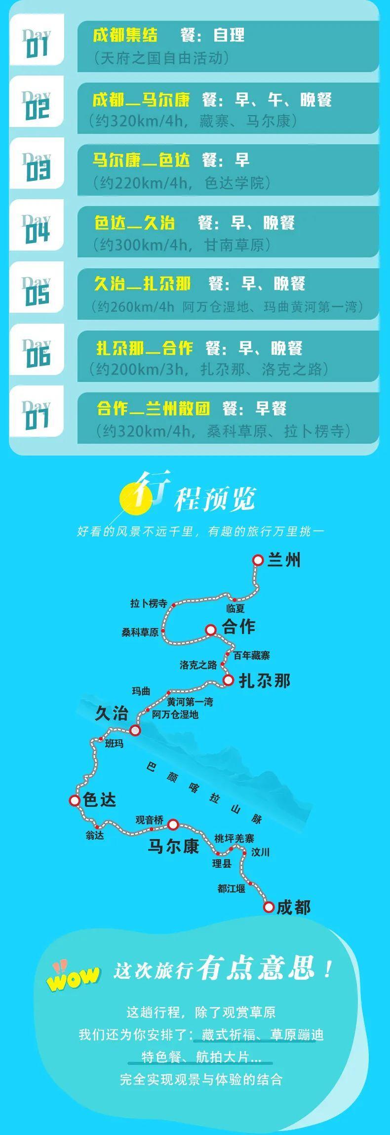 酒店集合出發,今天行駛旅程較爲輕鬆,一路在高山、草甸、海子、雪山中行駛,途中翻越幾個埡口,【隆格山埡口】4398【扎拉山埡口】4239【紅土埡口】4037【桑赤山埡口】4054,今天正是領略甘南草原的絕佳時機!