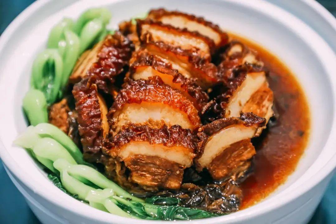 皮似皺紗、棕紅晶亮的客家風味名菜——“燒大塊”;