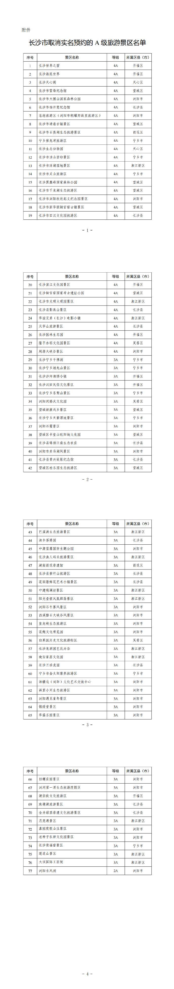 7月4日,長沙市文化旅遊廣電局宣佈,爲迎接暑期旅遊消費旺季的到來,進一步提升遊客體驗感和便利度,自7月6日起,長沙市除嶽麓山·橘子洲旅遊區(含嶽麓山、橘子洲、嶽麓書院、新民學會舊址四個子景區)、寧鄉市花明樓景區、湖南博物院、湖南省科學技術館、湖南省植物園等5個景區需實名預約外,其餘77家A級旅遊景區全面取消實名預約。