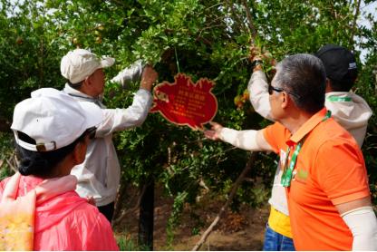 伯什克然木鄉位於喀什市東北部,是一個以林果業爲主、畜牧業爲輔的典型郊區農業鄉。當天,“怡寶環駕中國夢之旅”的車友們興致勃勃地走進伯什克然木鄉石榴園,參加石榴樹認種掛牌儀式。