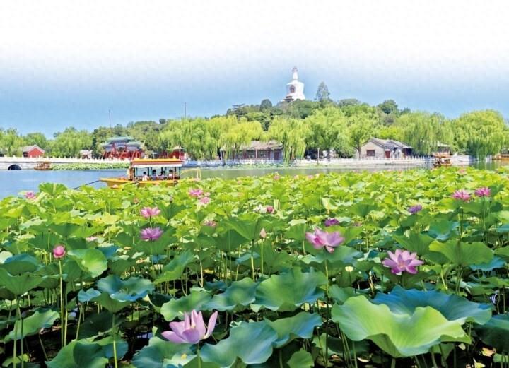 圖爲近日北京北海公園荷花盛開,吸引遊客乘船賞荷。 龔文豹 攝