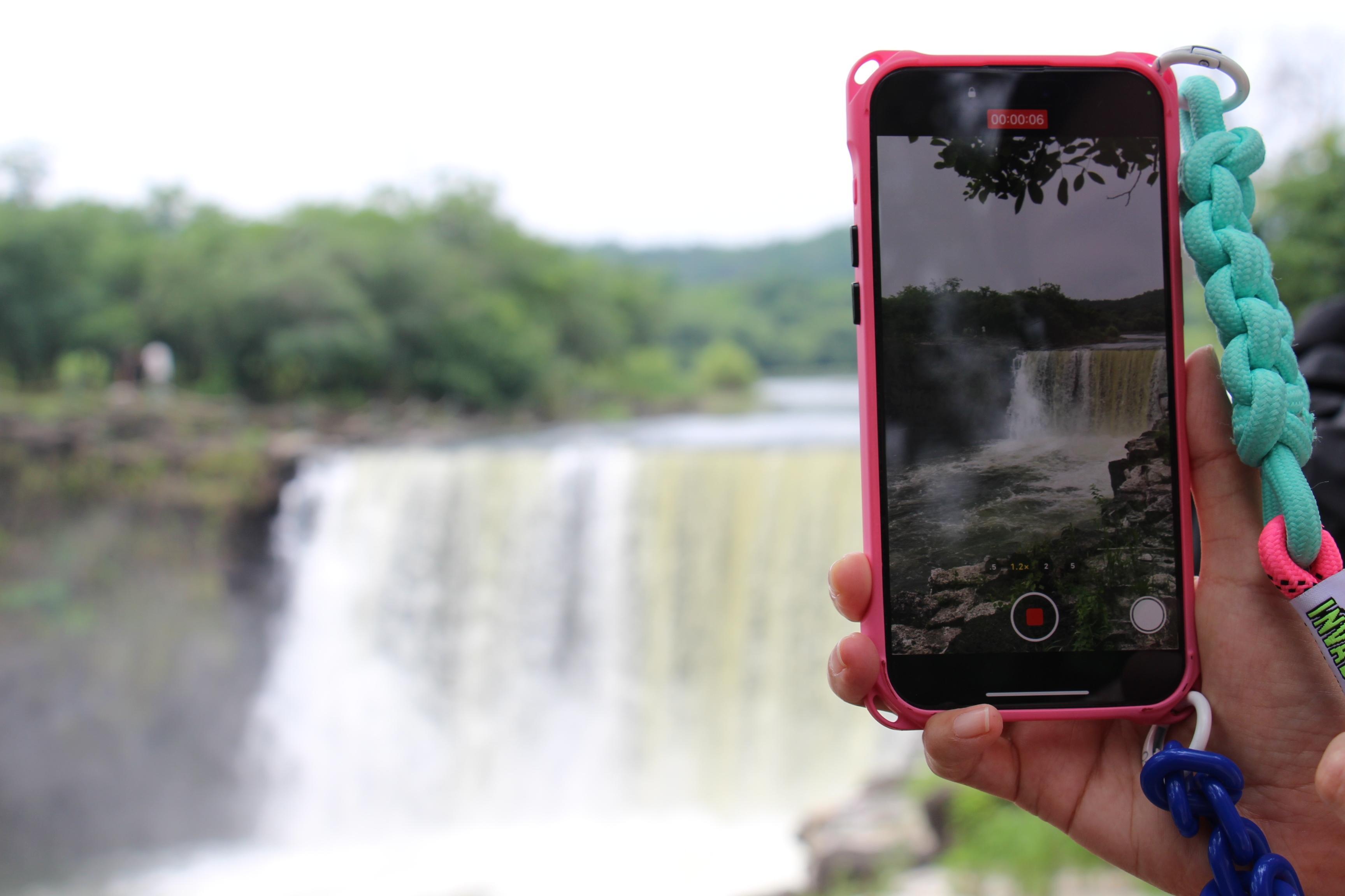 遊客拿出手機等待拍攝鏡泊湖懸崖跳水錶演 鄧敏敏 攝